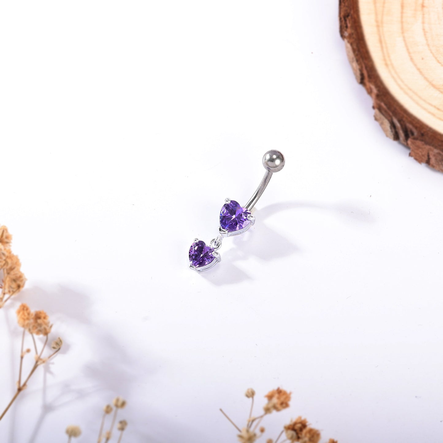 14G Heart Dangle Belly Navel Rings Purple Zircon Belly Button Rings