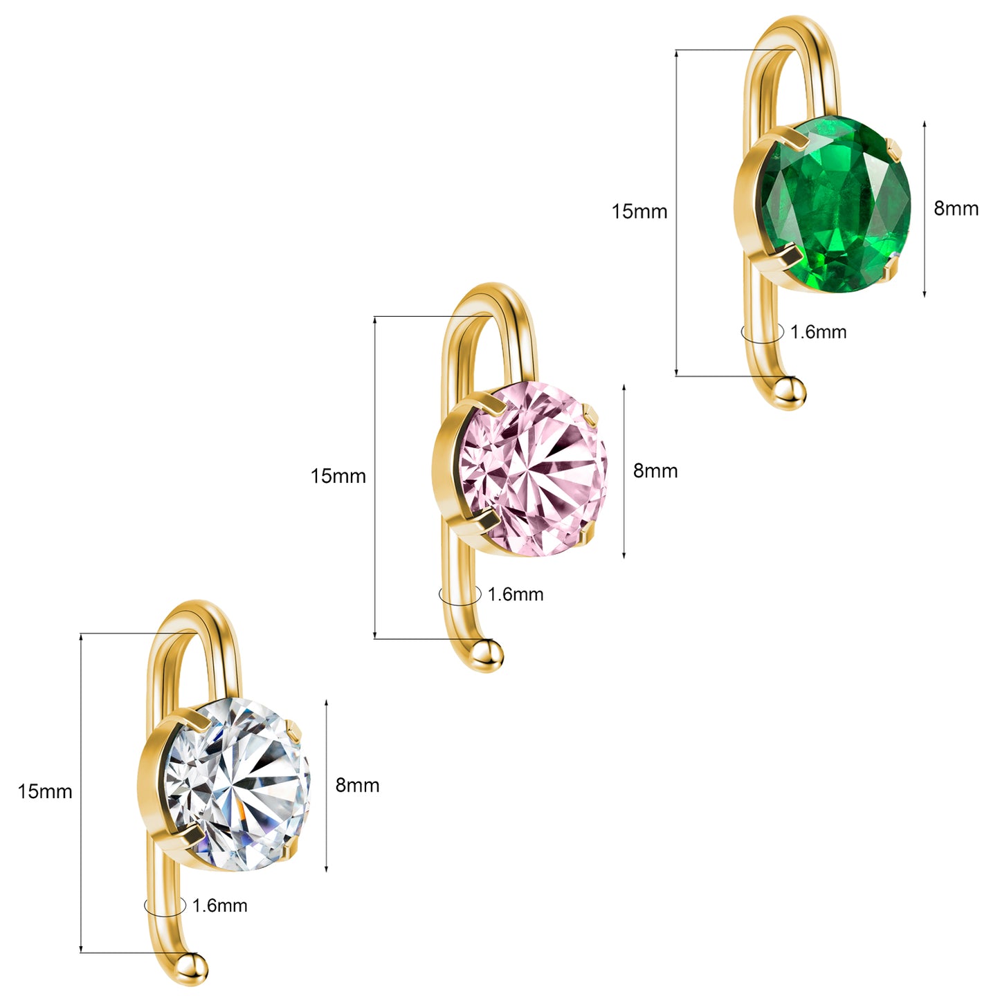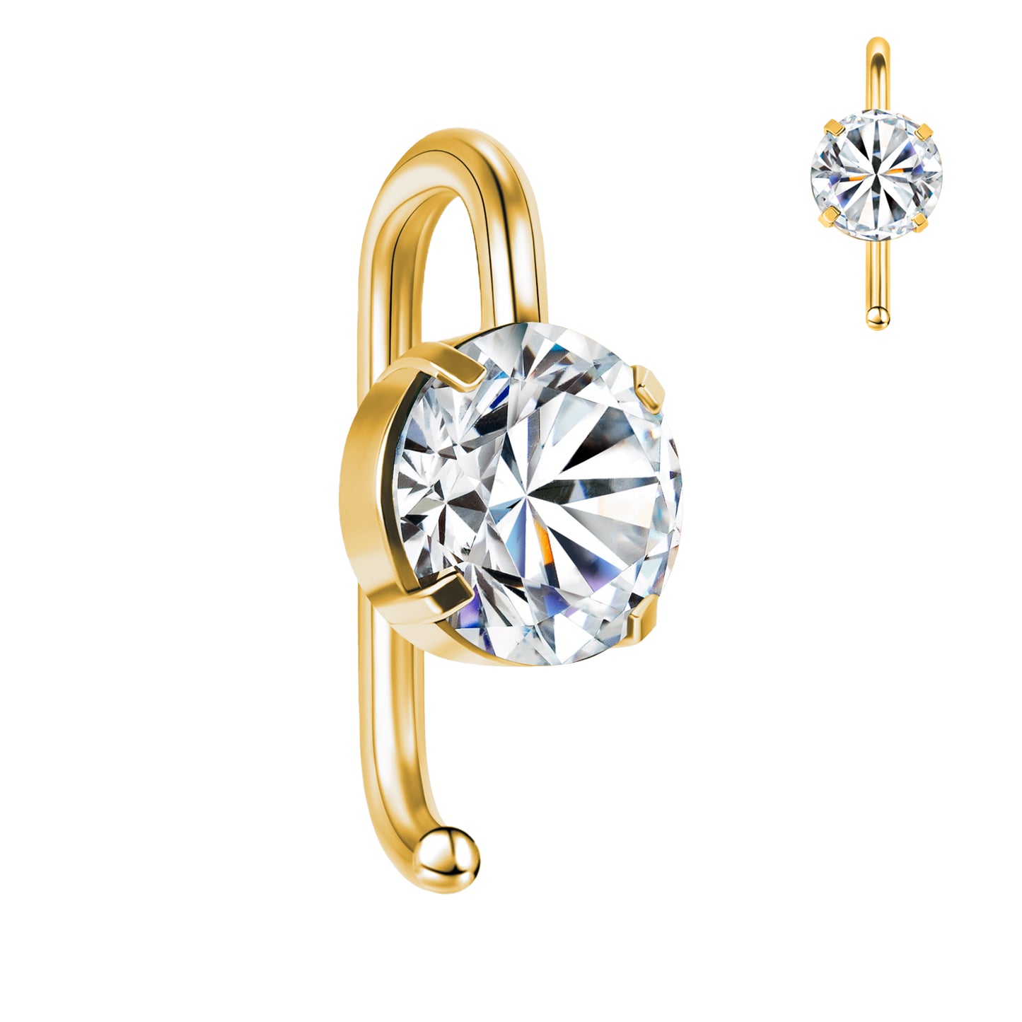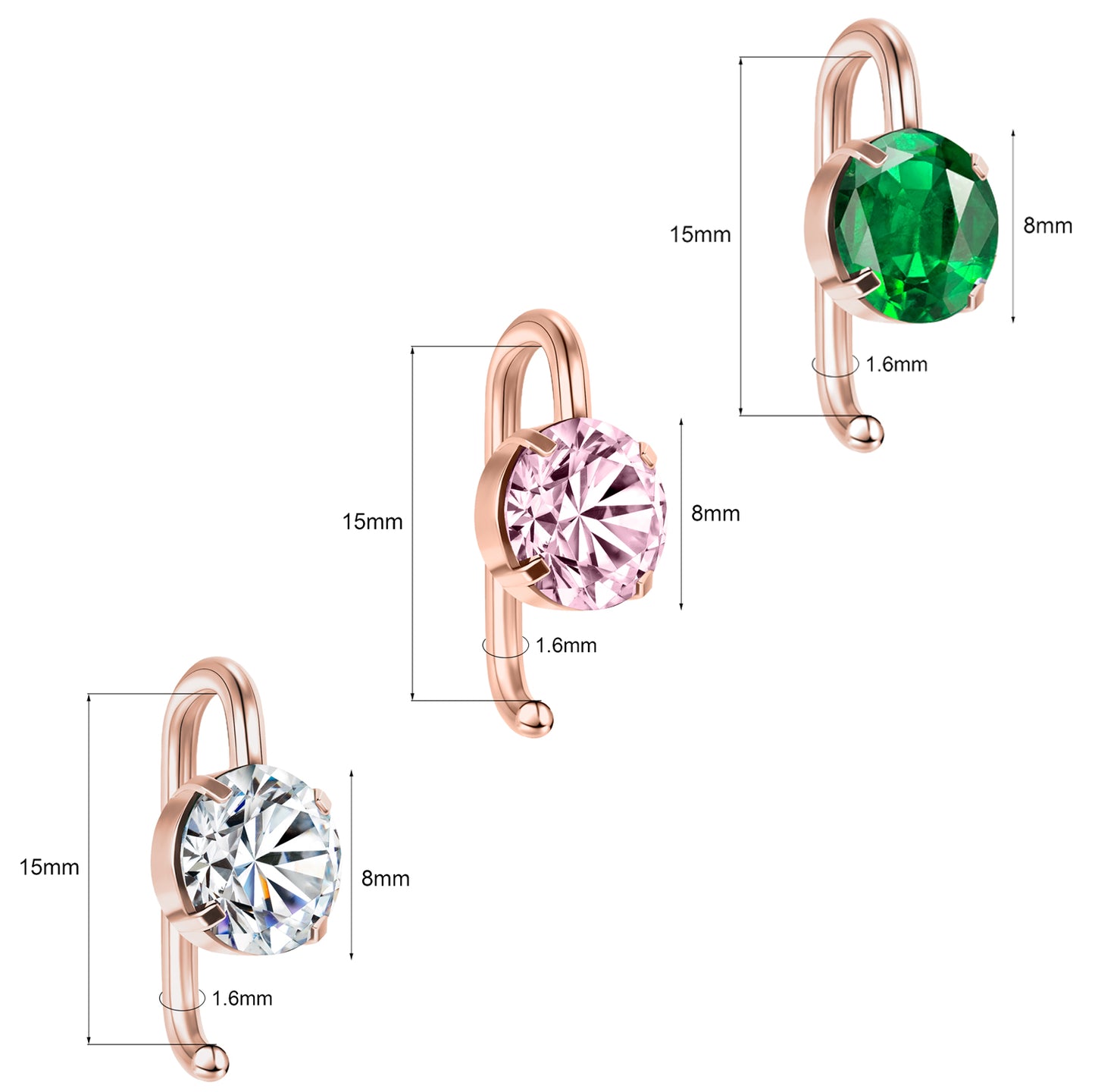 18g/20g Bling Zircon Nose Stud Push-in Nose Ring Threadless Nostril Piercing
