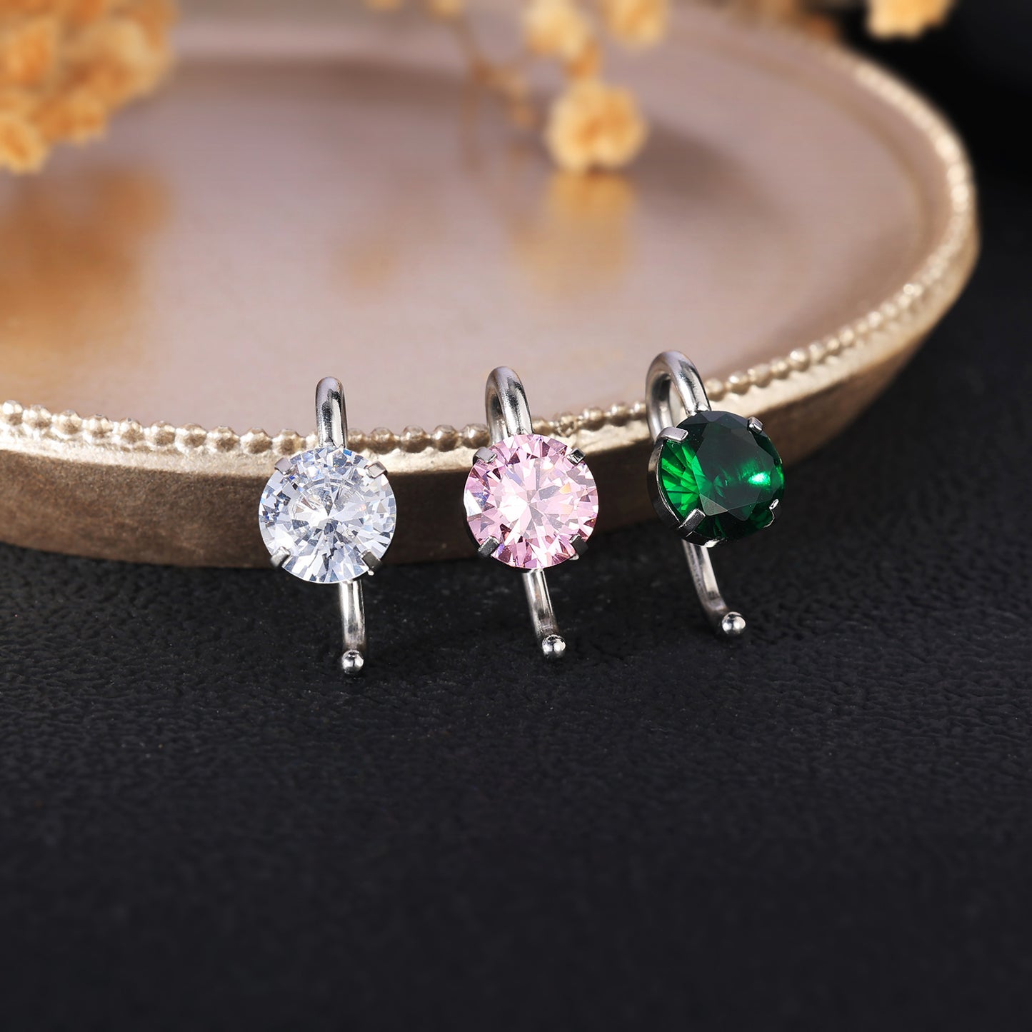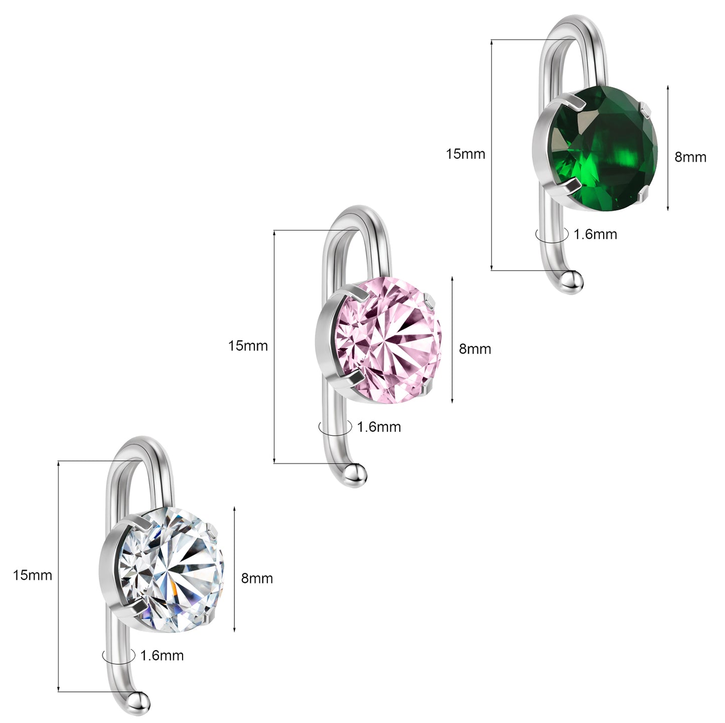 18g/20g Shiny Zircon Nose Stud Flat Back Nose Ring Internal Thread Nostril Piercing