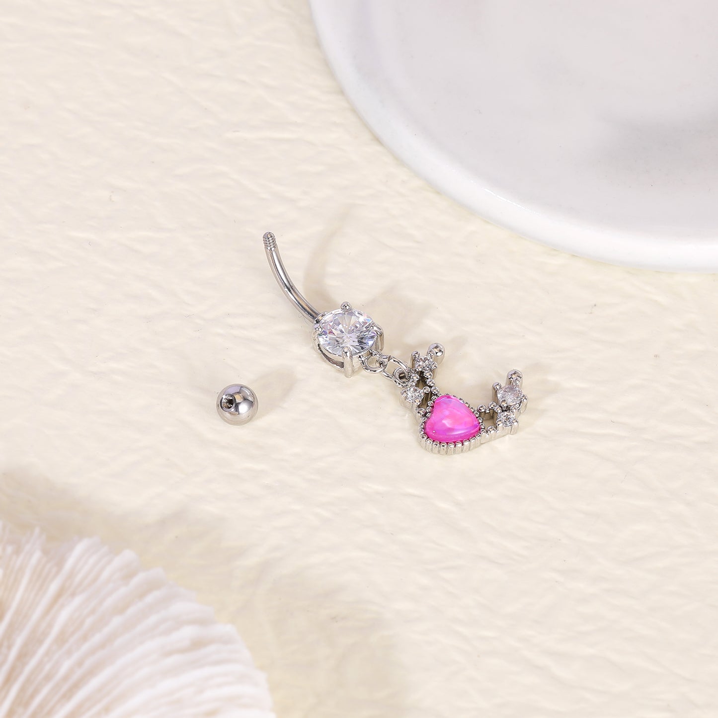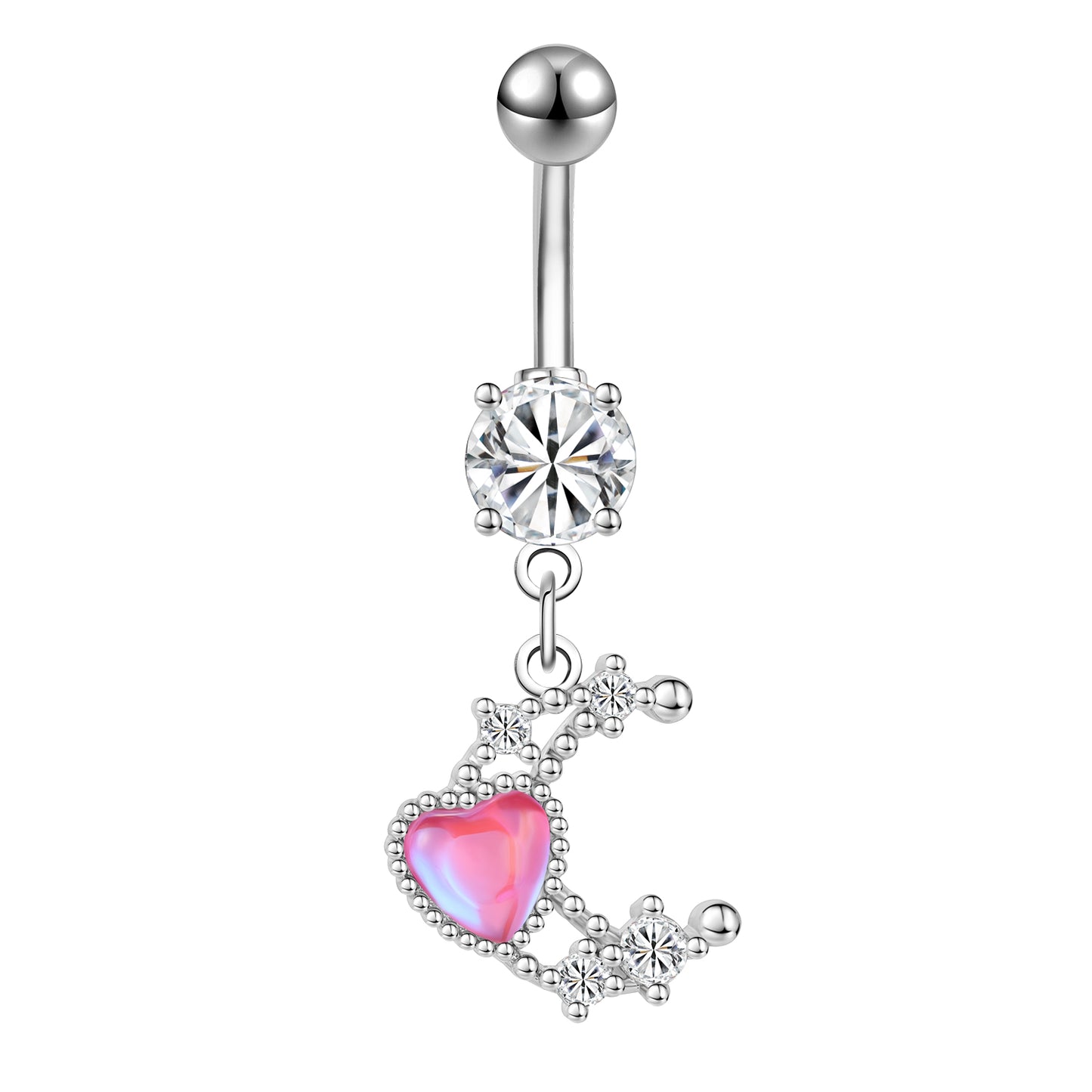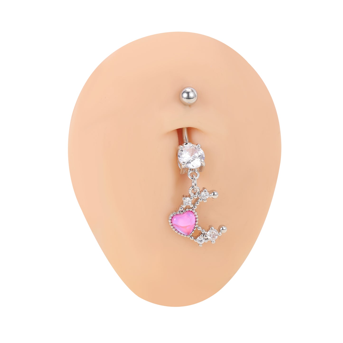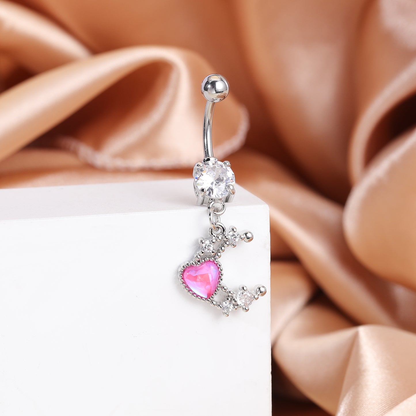 14G Moon Dangle Belly Navel Rings Red Heart Zirconia Belly Button Rings