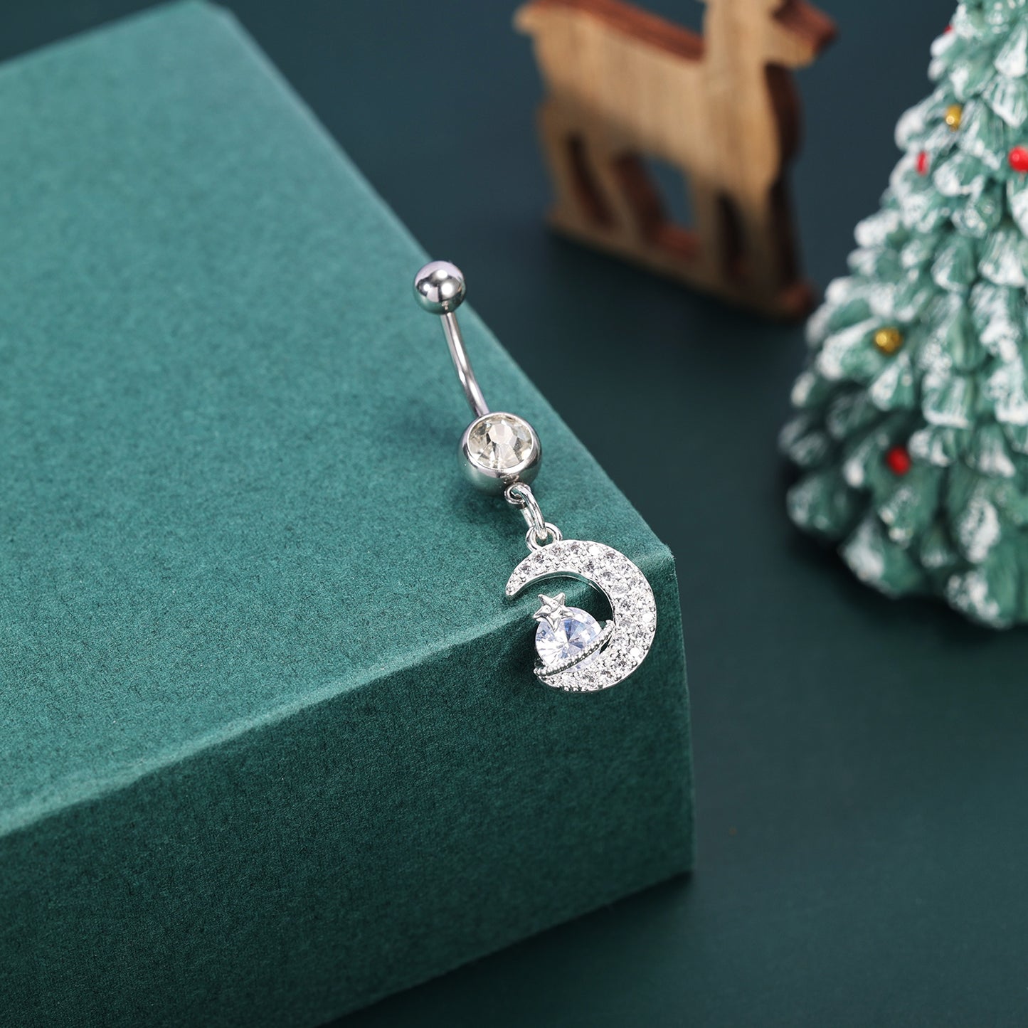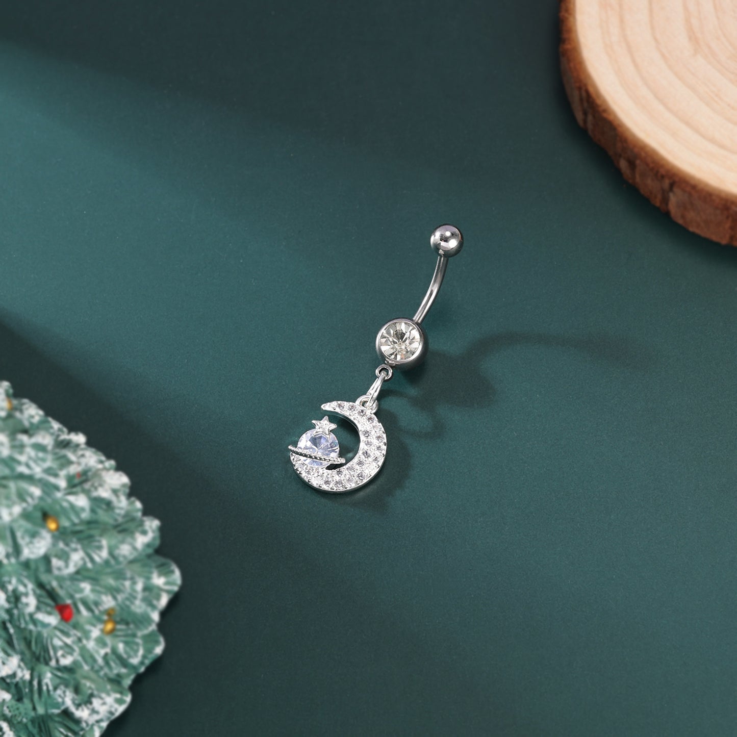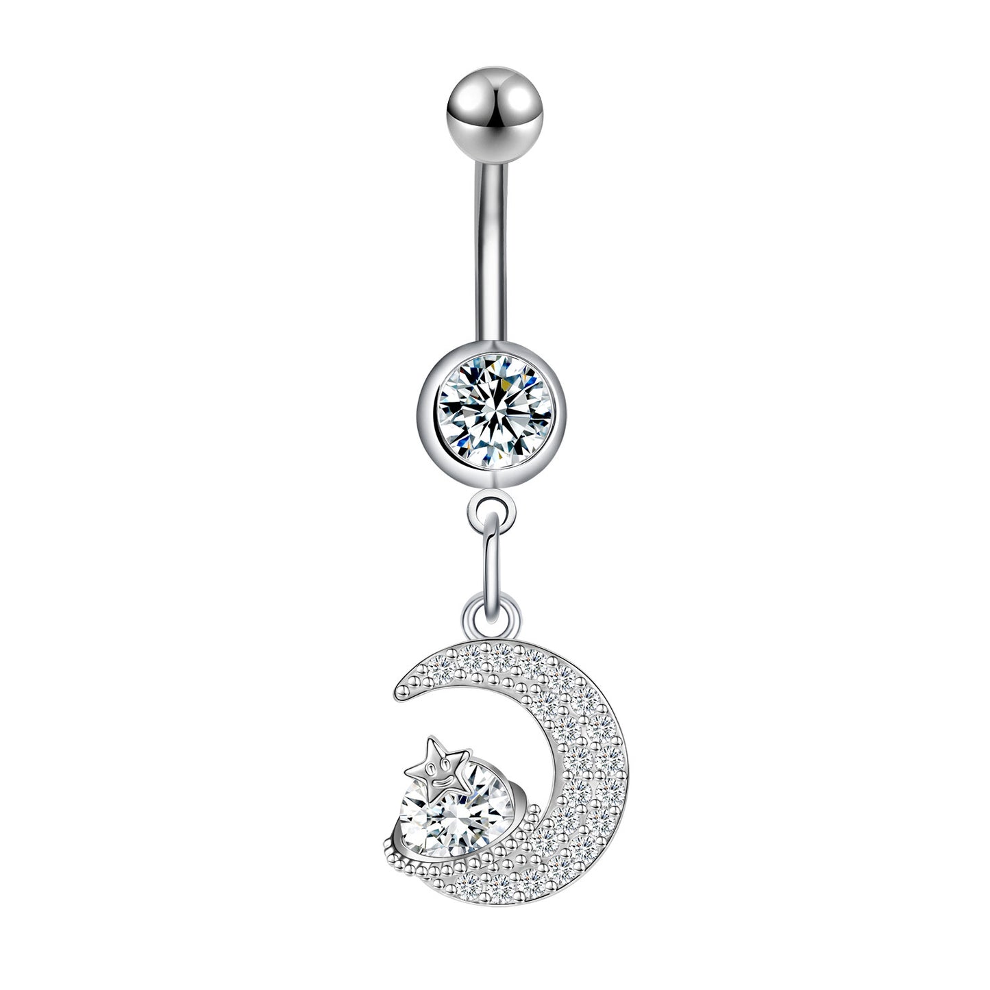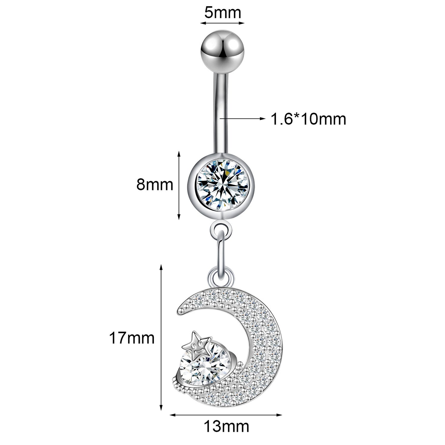 14G Moon Star Dangle Belly Navel Rings CZ Crystal Belly Button Rings