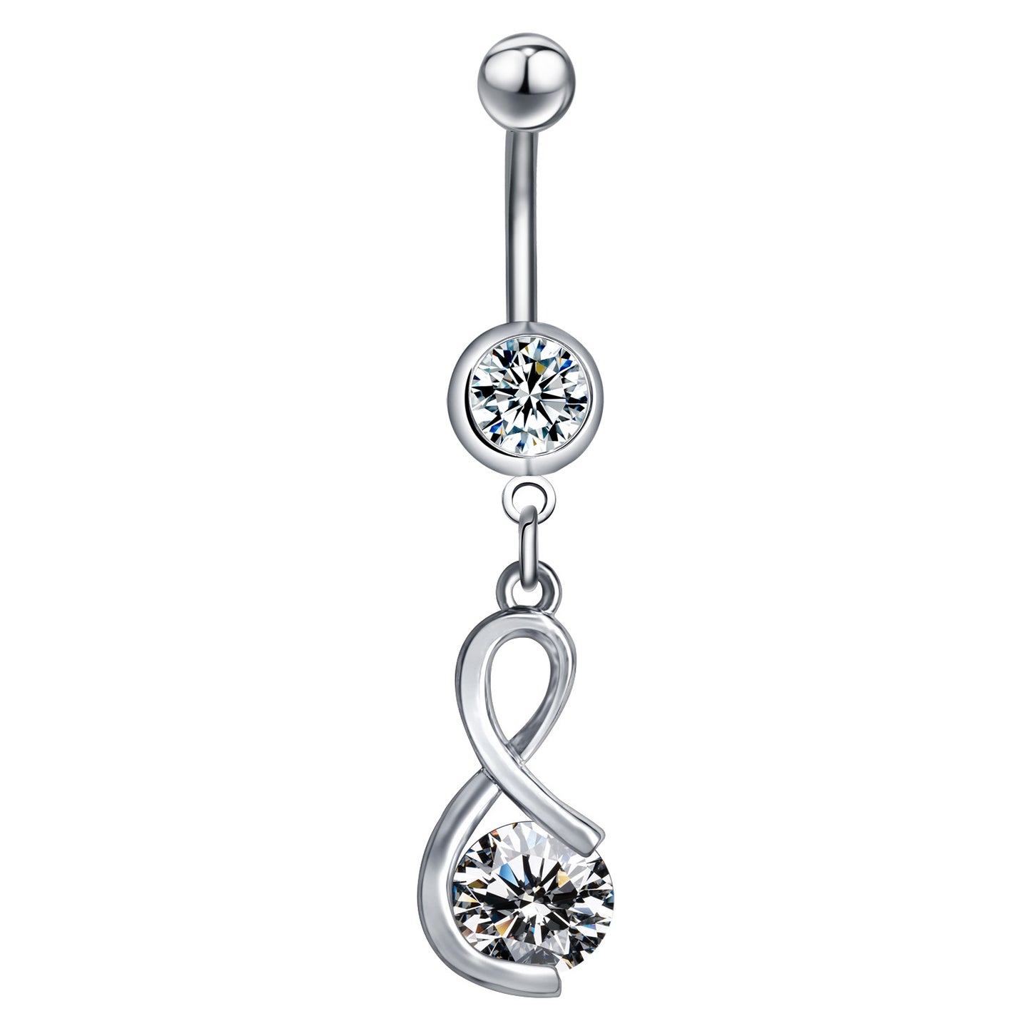 - Navel Ring Design: Number 8 with White Zircon Dangle Belly Button Rings.