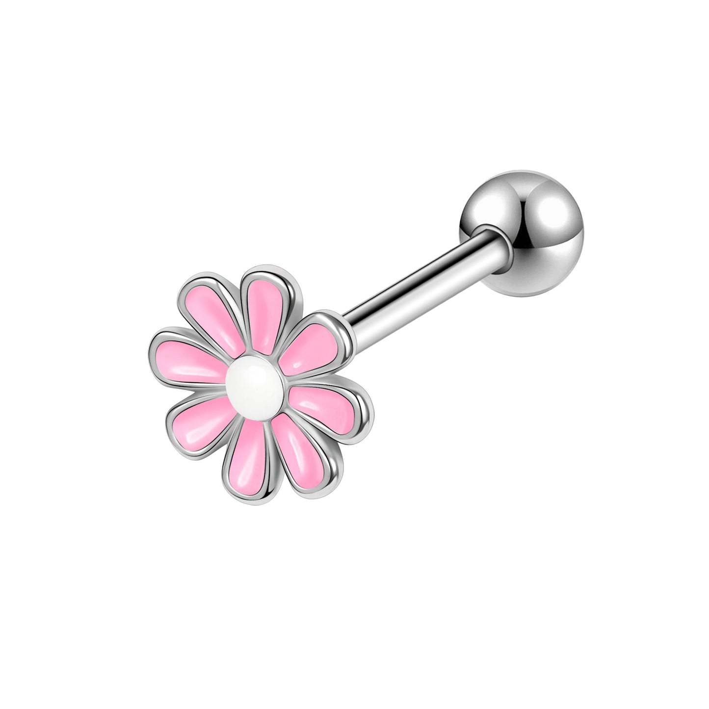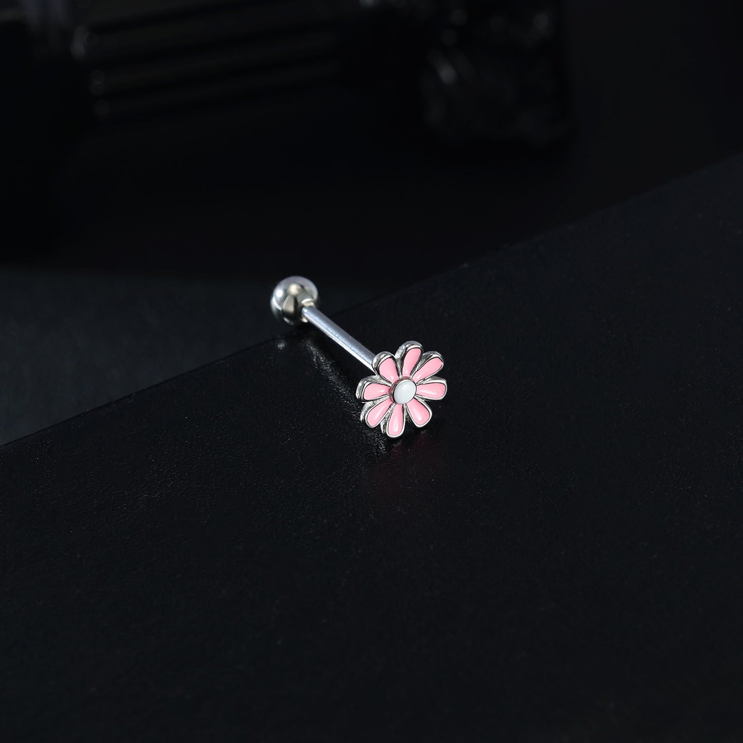 14g Pink Flower Tongue Ring Threaded Tongue Piercing Barbell Jewelry