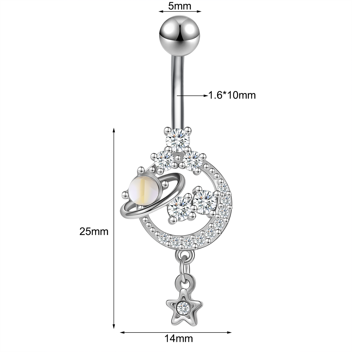 14G Planet Belly Navel Rings Cubic Zircon Belly Button Rings