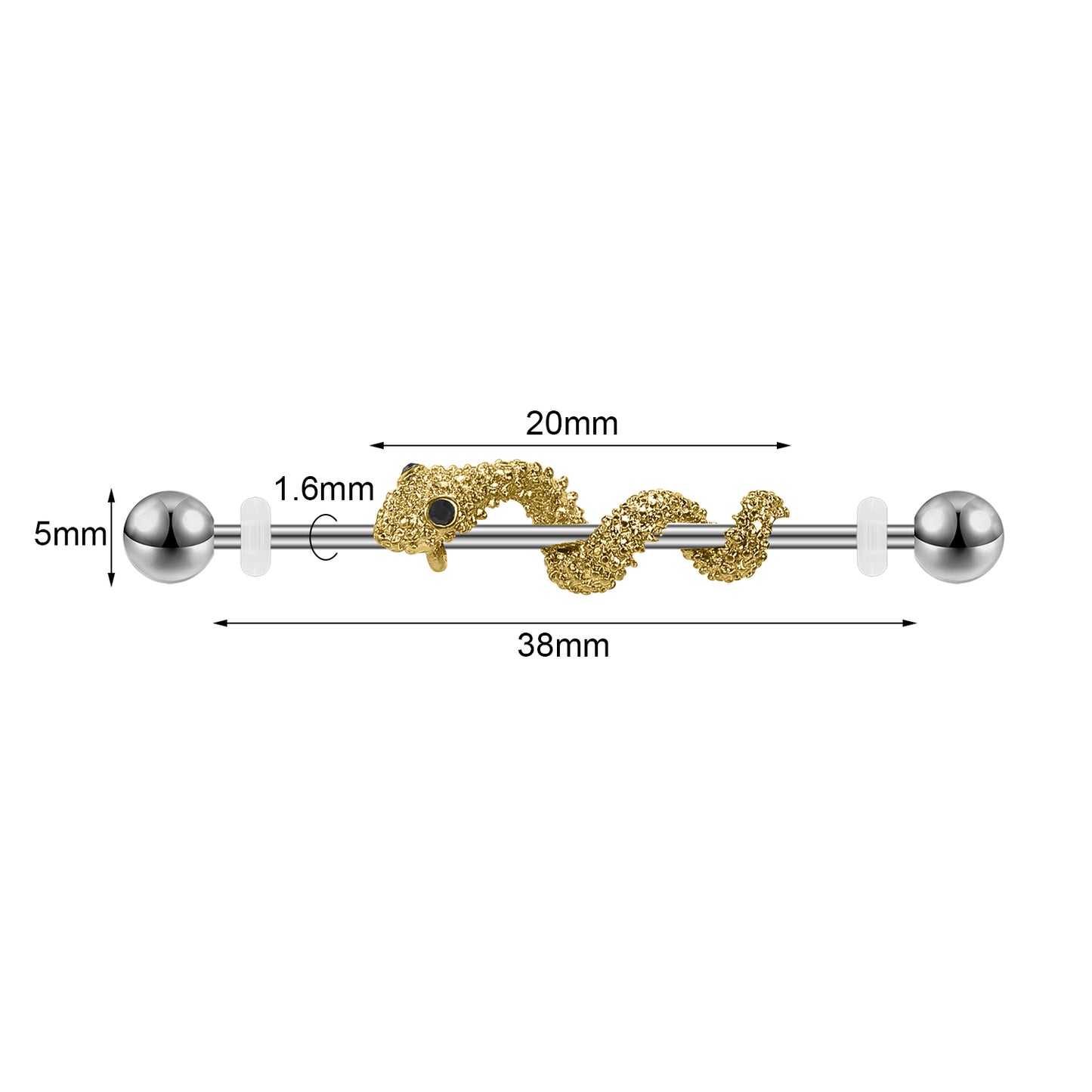 14G Snake Industrial Barbell Gold Silver Color Helix Ear Piercing