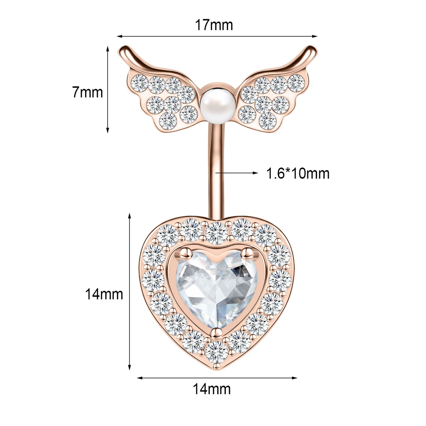 14G Stainless Steel Belly Navel Rings Heart Zircon Belly Button Rings