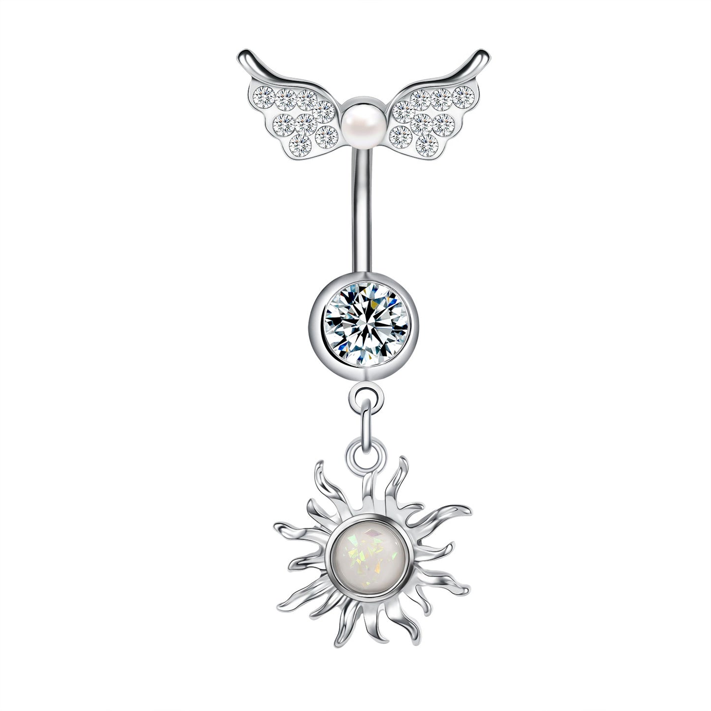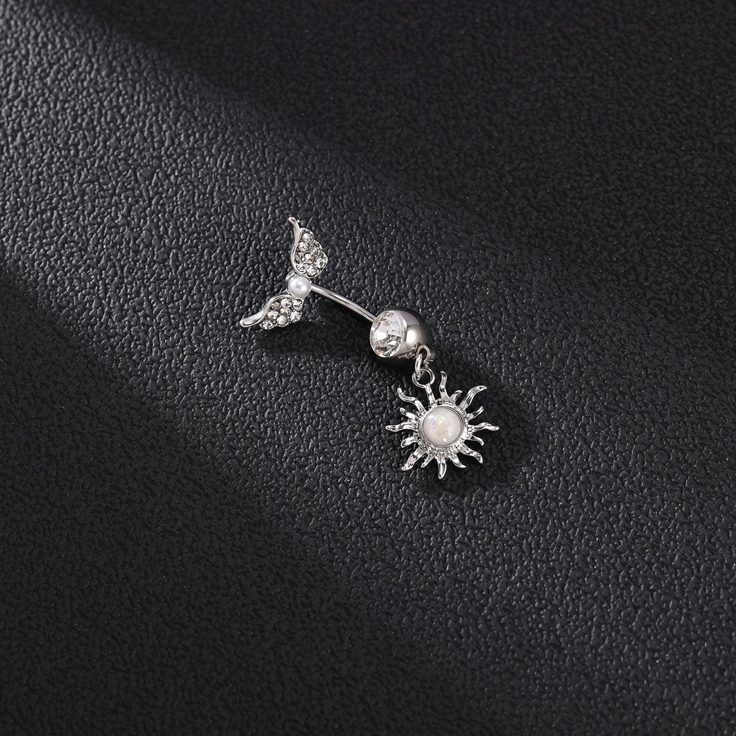 14G Stainless Steel Belly Navel Rings Opal Dangle Belly Button Rings