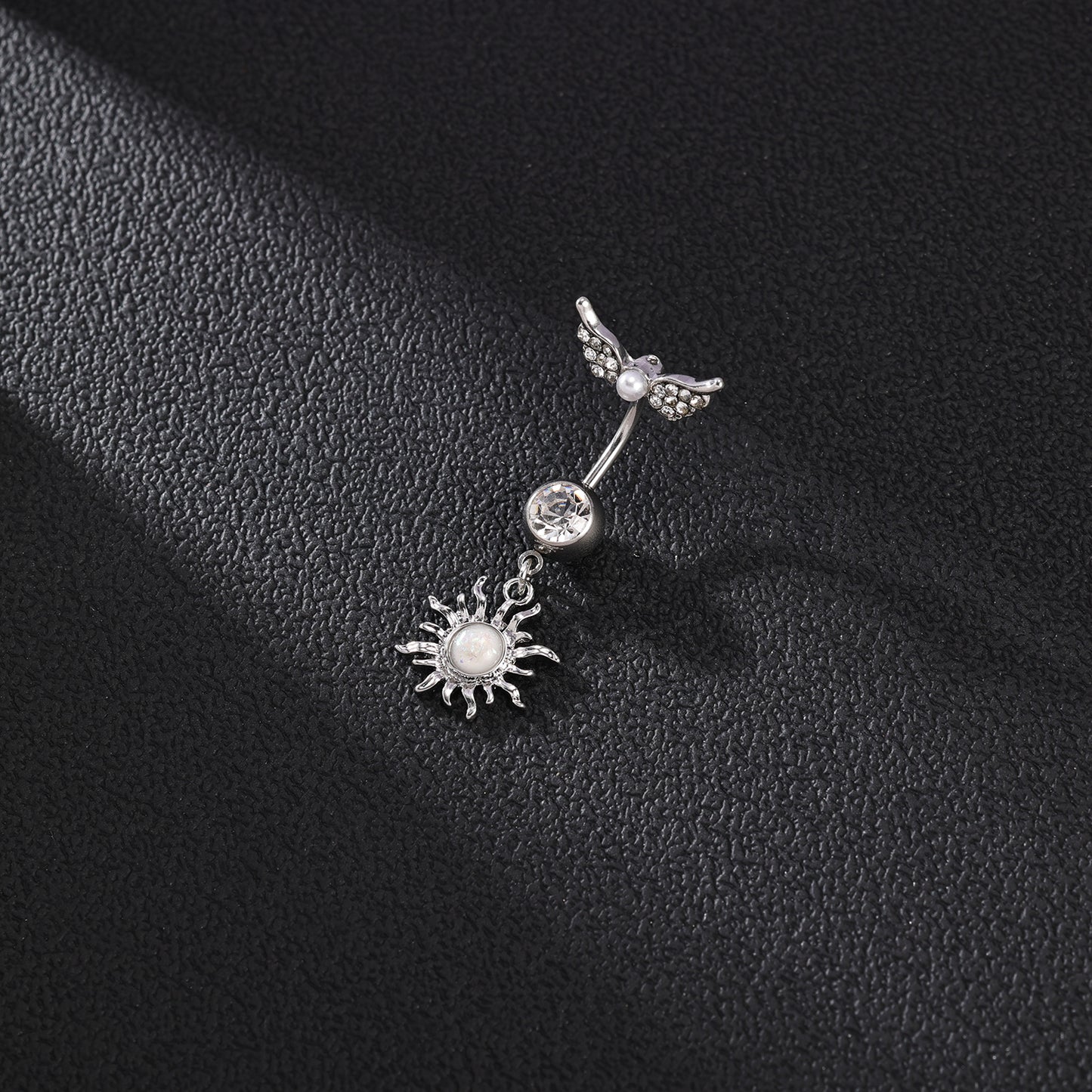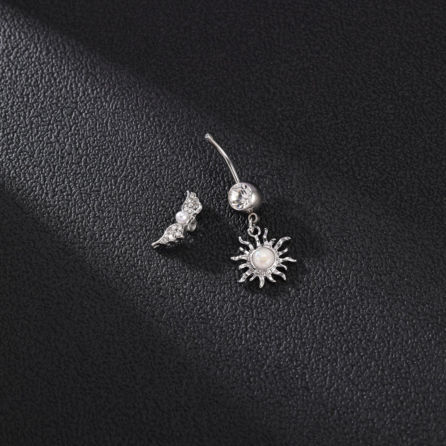- Belly Button Ring Jewelry made with Stainless Steel, Cubic Zirconia, Opal and Pearl.