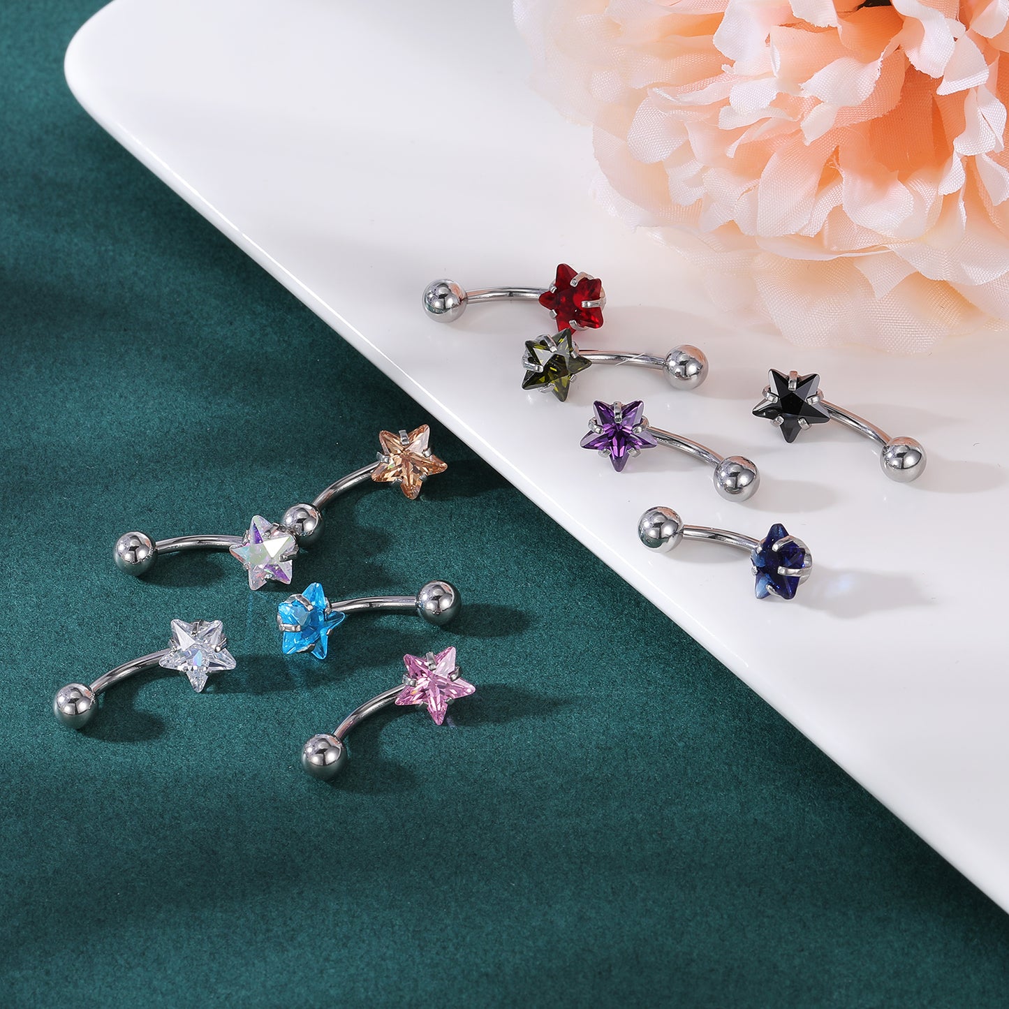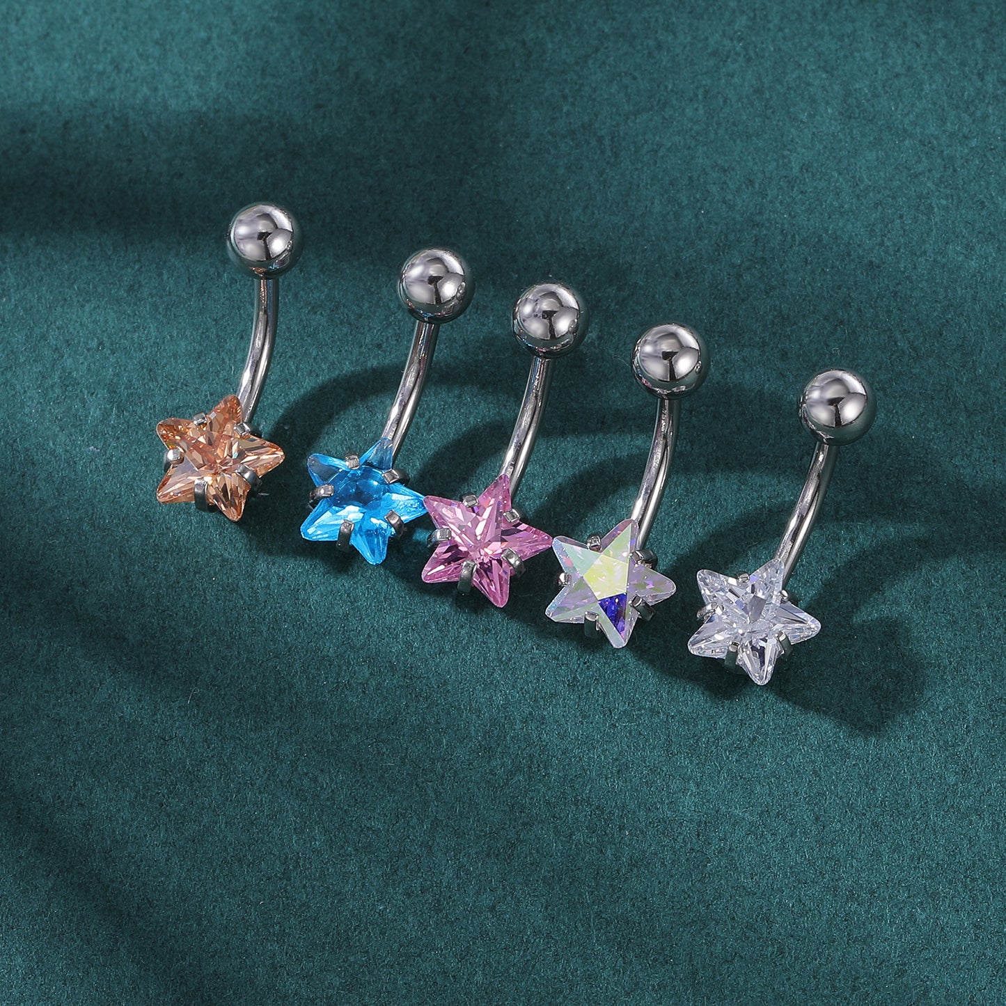 14g Stars Stainless Steel Belly Button Rings Cubic Zirconia Navel Piercing Jewelry
