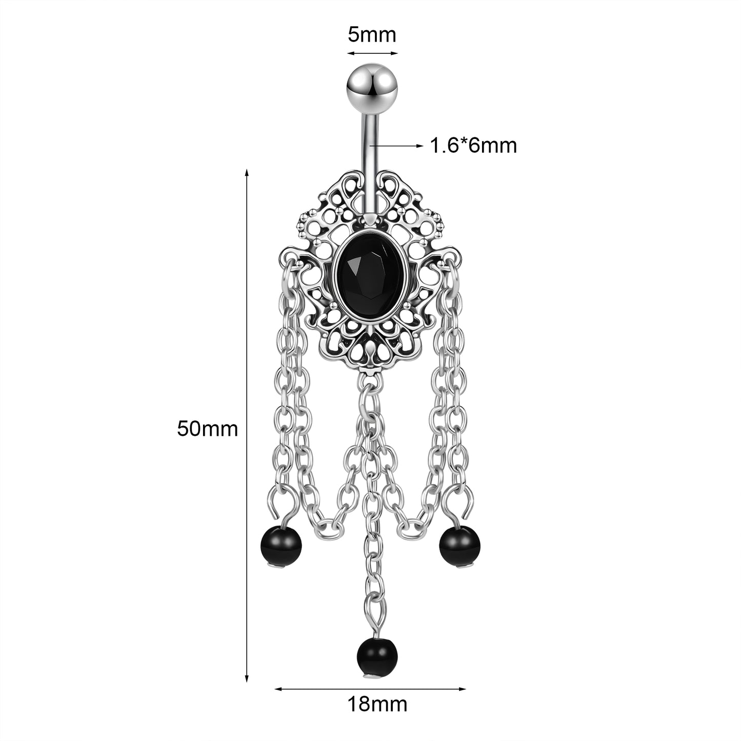 - Belly Bar thickness: 14G (1.6mm), Bar length: 6mm