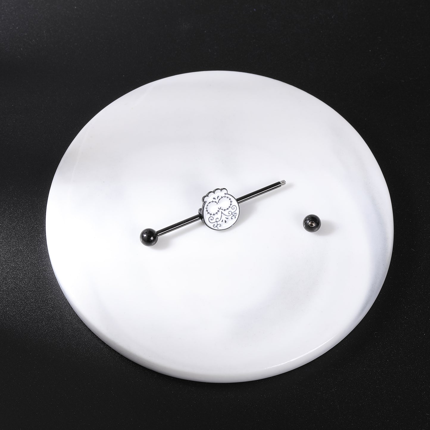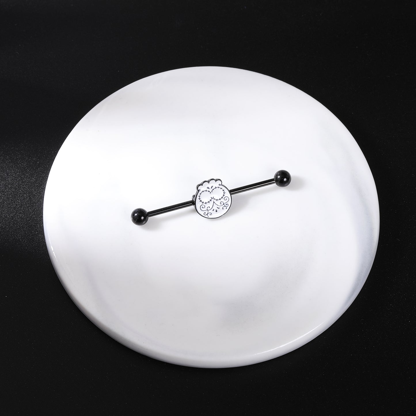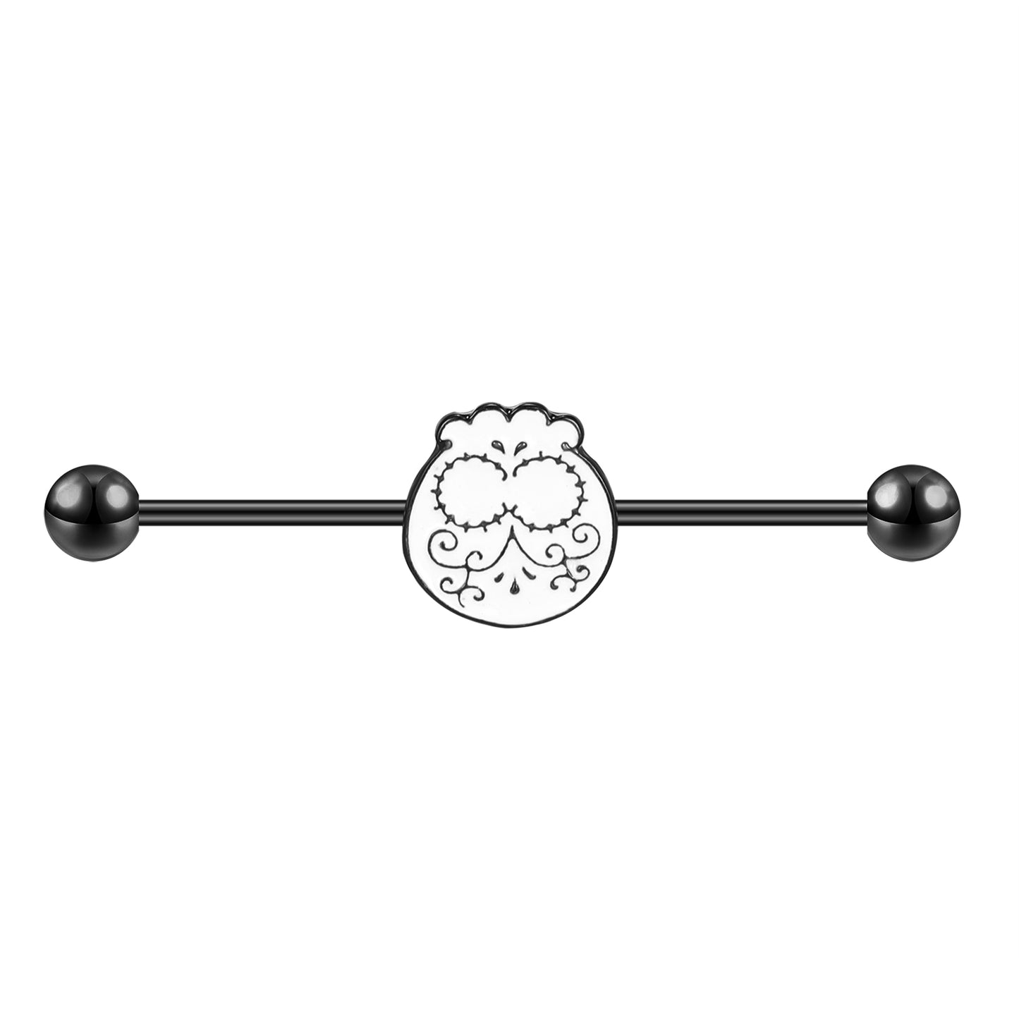 14G White Ghost Head Industrial Barbell Black Color Helix Ear Piercing