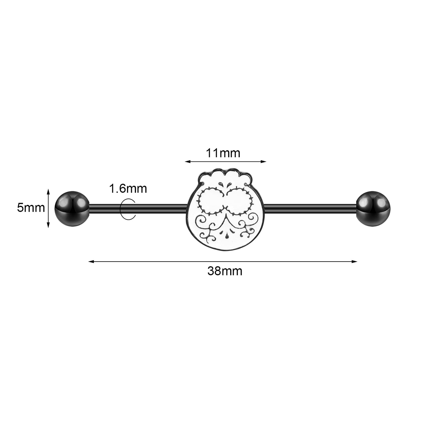 - Gauge: 14g(1.6mm) Bar Thickness, Bar Length: 38mm, Ghost Head Size: 11mm.