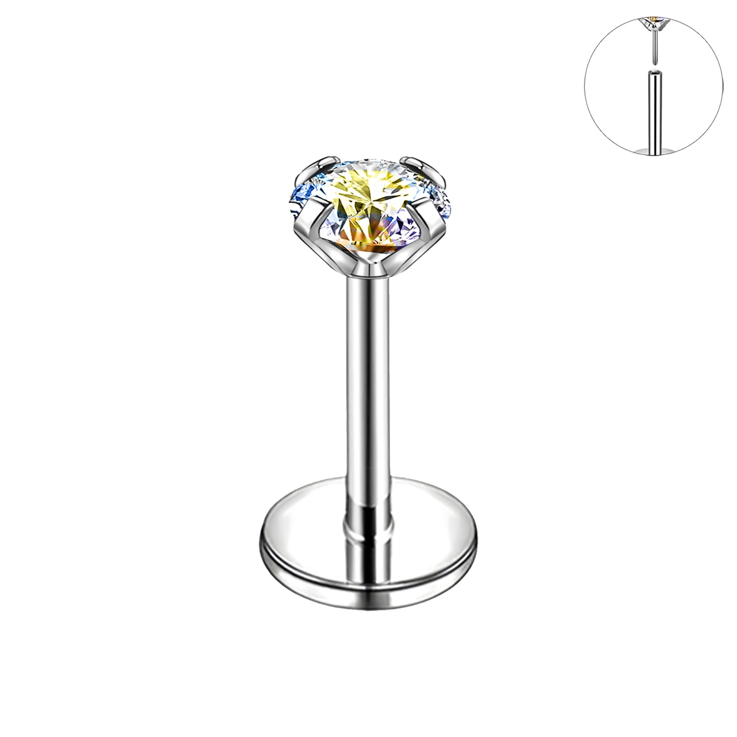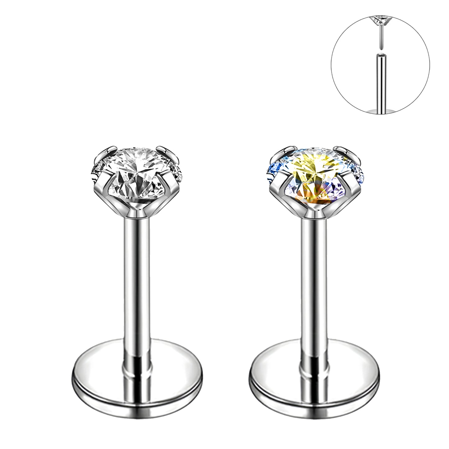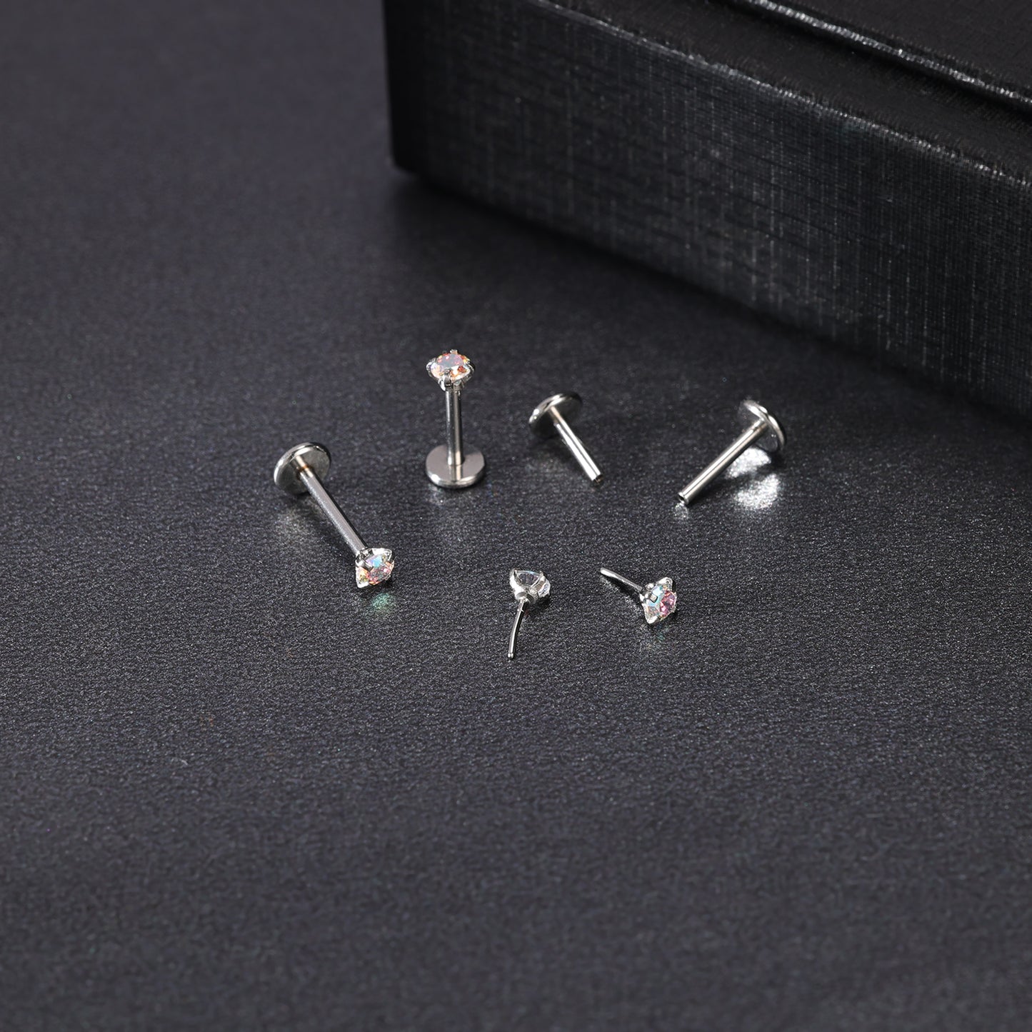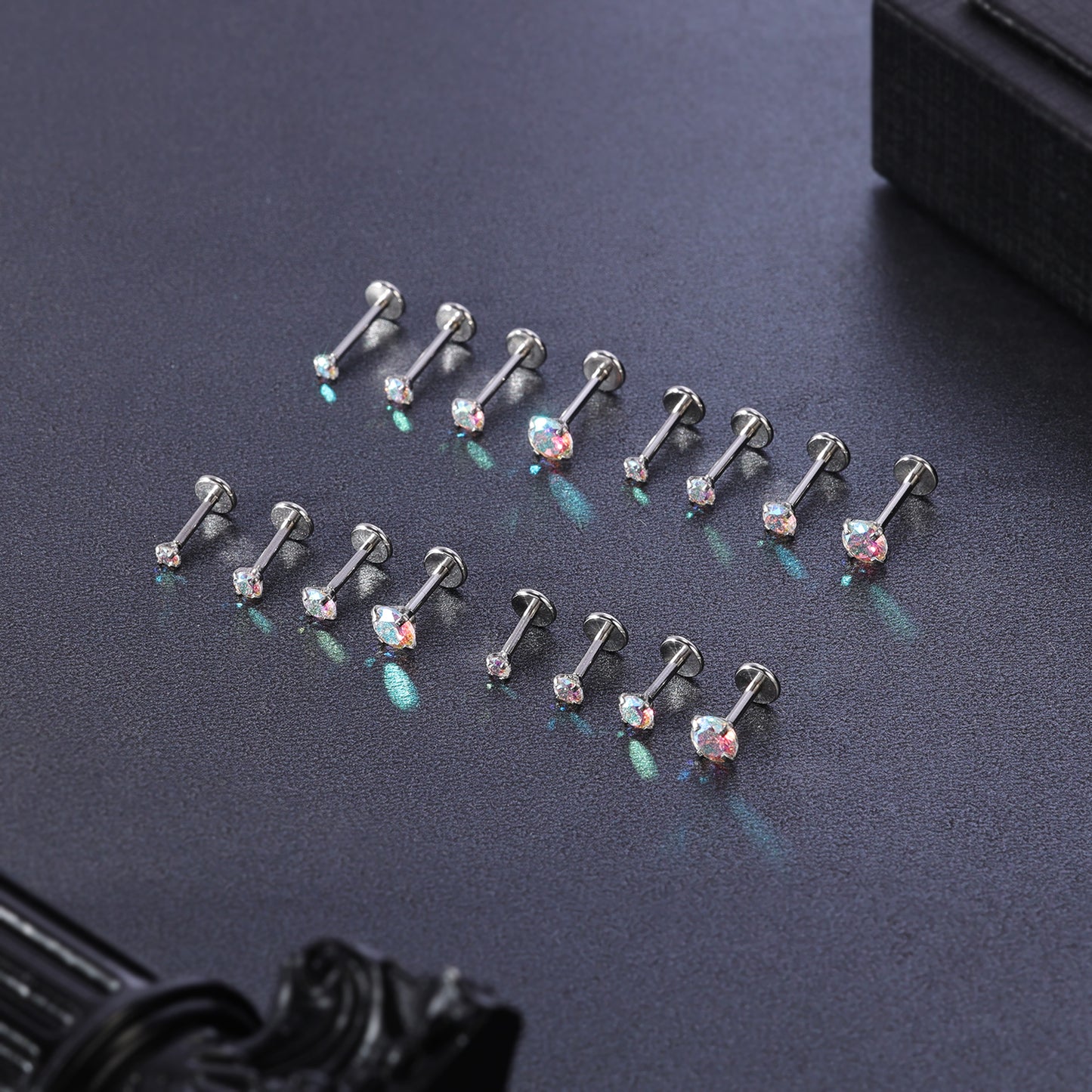 16g/18g/20g Flat Back Earring Rainbow Zircon Cartilage Earring Threadless Conch Helix Piercing