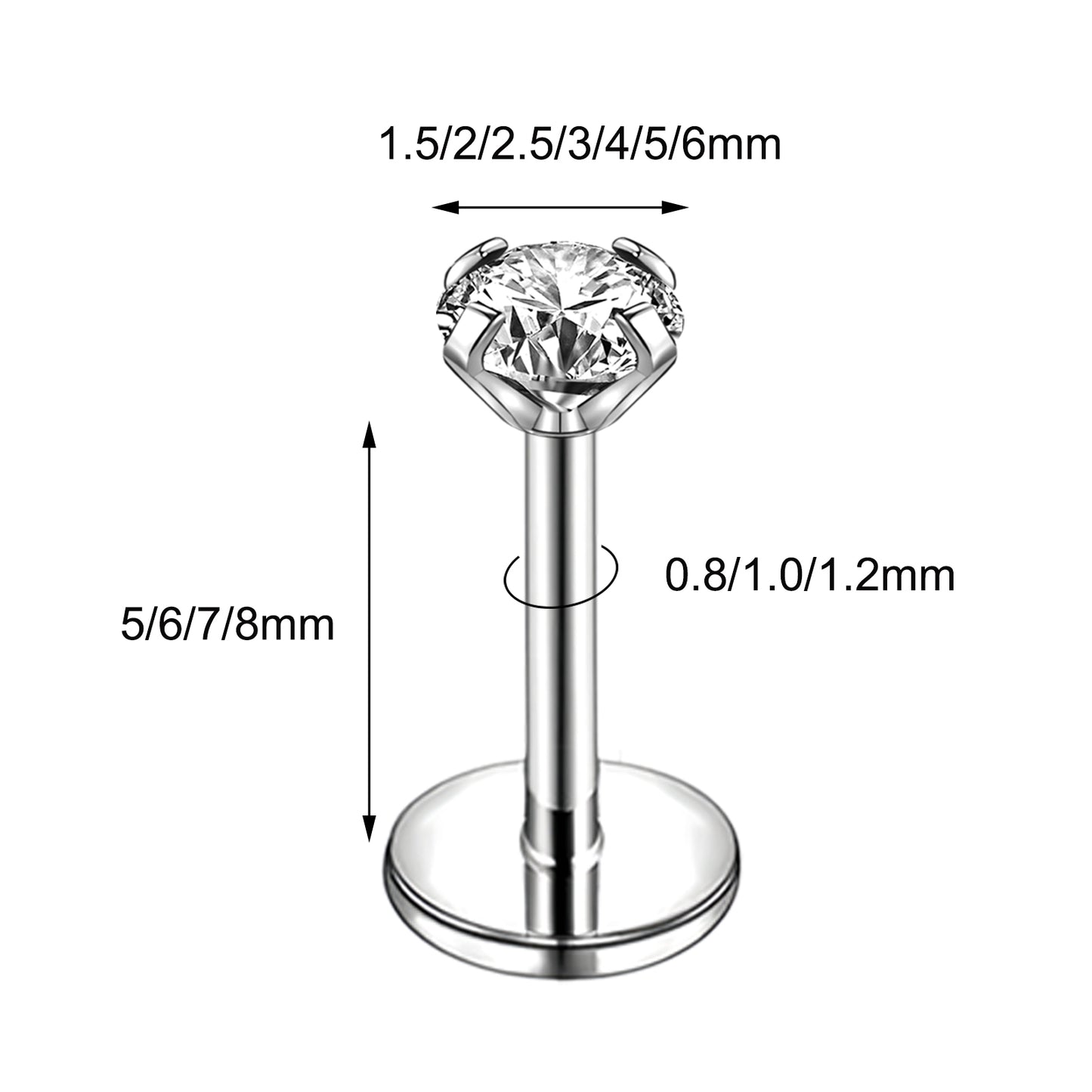 18g/20g Shiny Zircon Nose Stud Flat Back Nose Ring Internal Thread Nostril Piercing