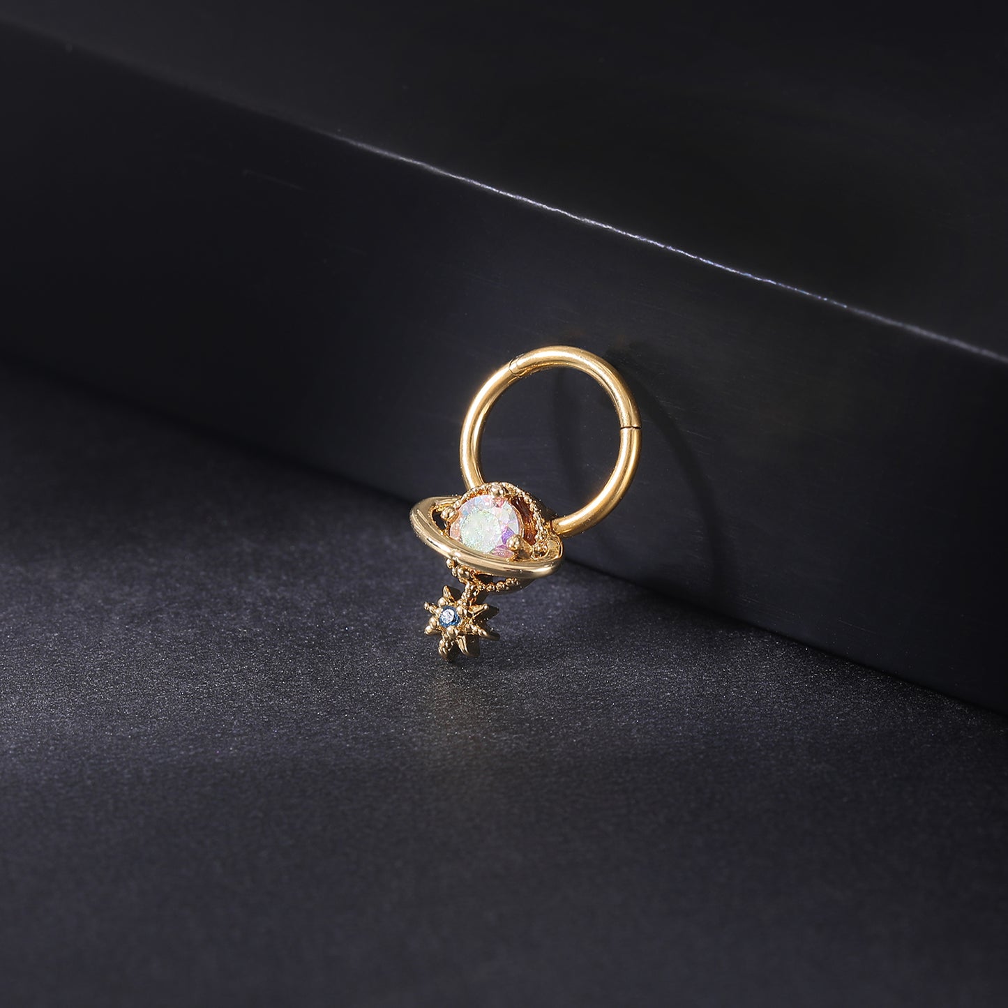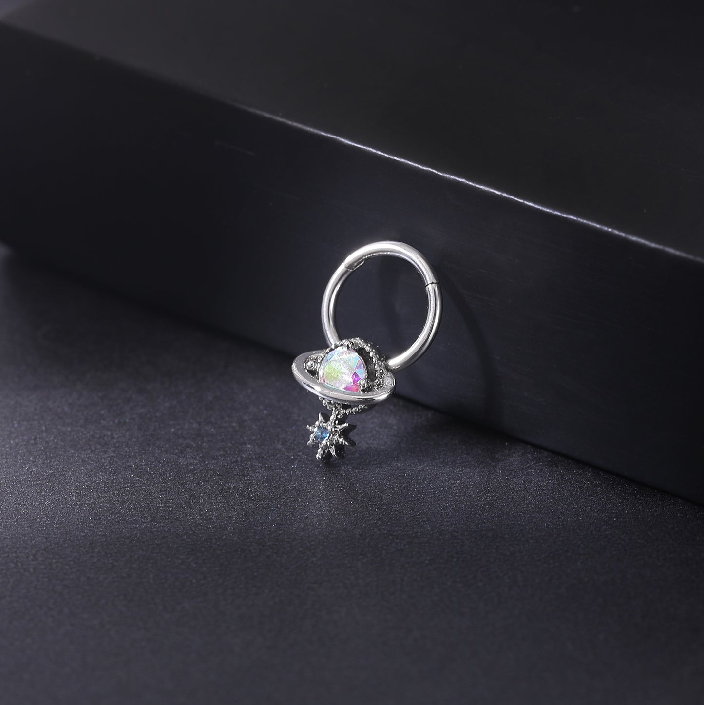 16G AB White Crystal Nose Ring Planet Helix Cartilage Piercing