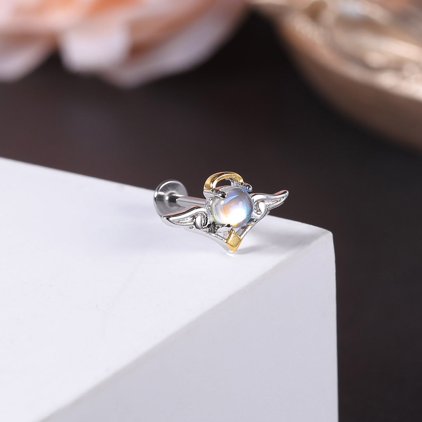 16G Angel Insert Stone Labret Rings Stainless Steel Tragus Helix Conch Piercing