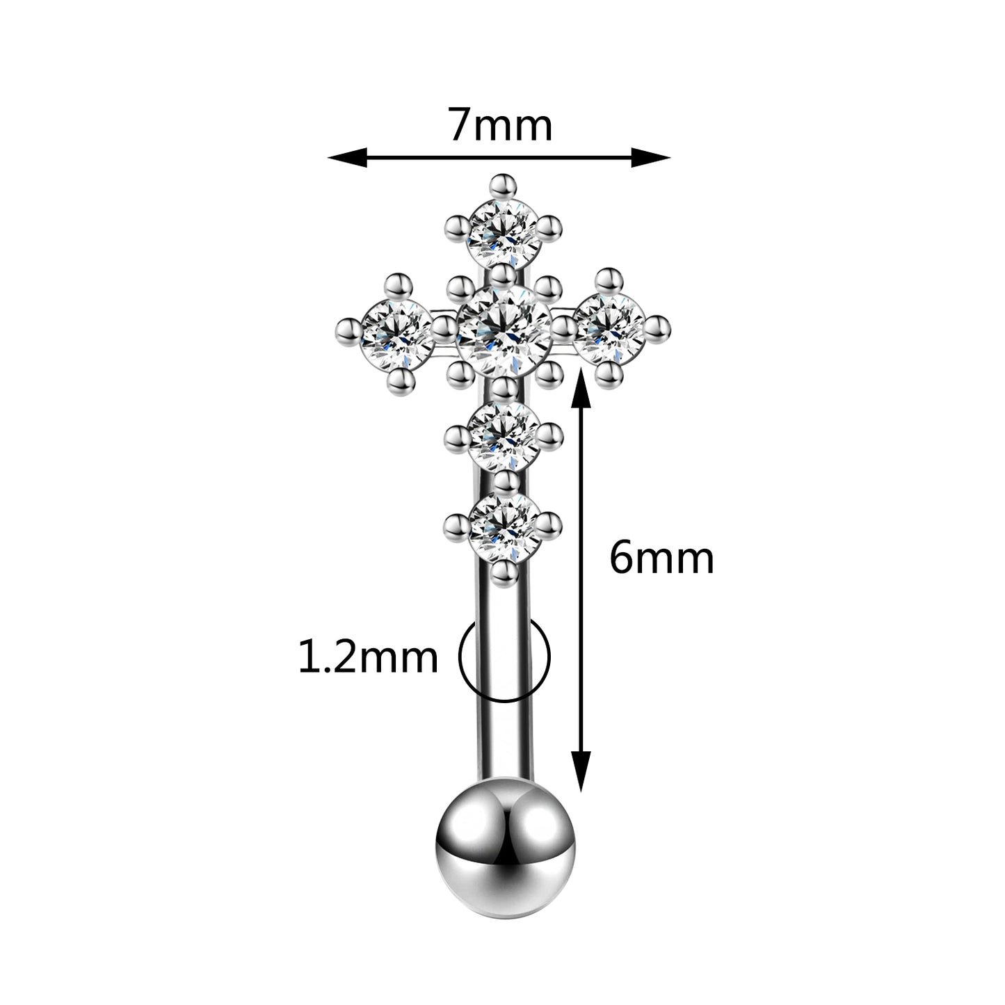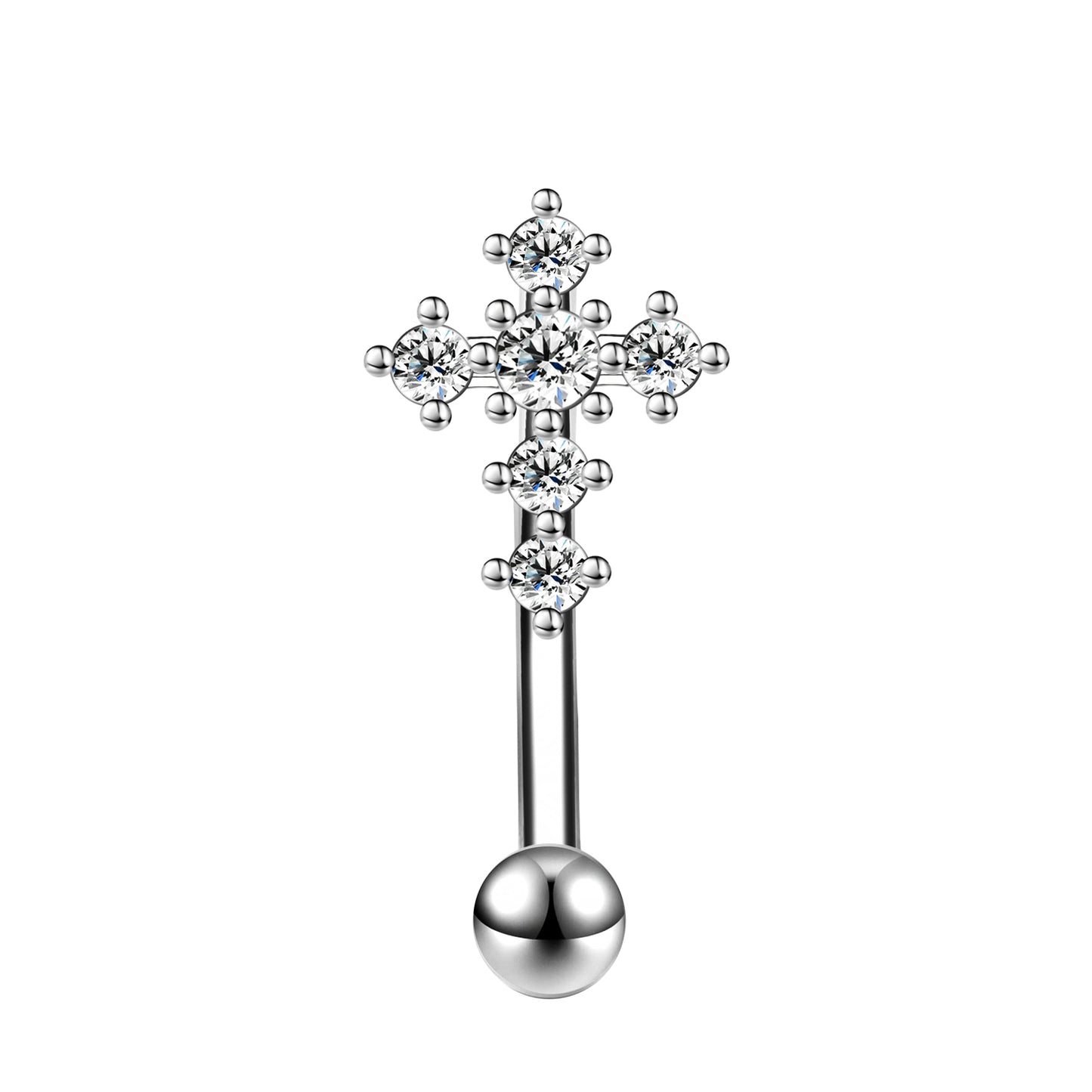16g Cross Eyebrow Ring Bling Crystal Eyebrow Piercing Helix Rook Daith Piercing