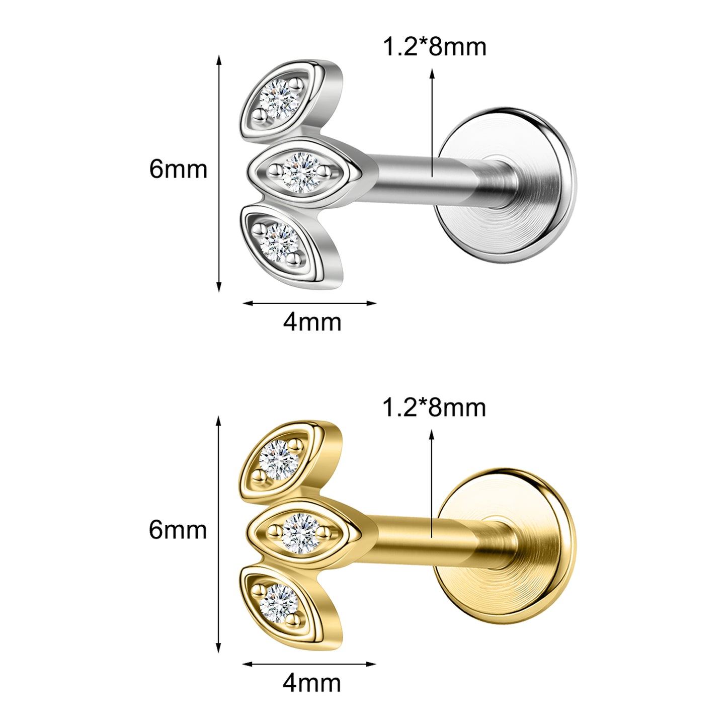 - Material: Labret Lip Studs made of 316L Stainless Steel and Cubic Zirconia.
