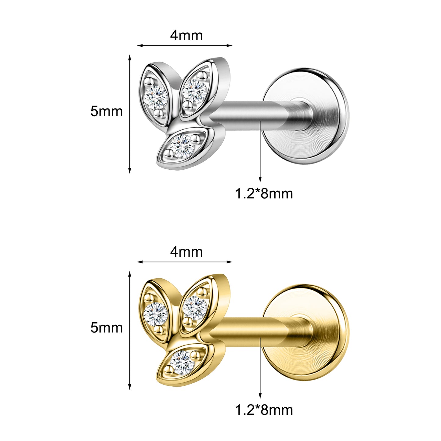 • Material: Labret Lip Studs made of 316L Stainless Steel and Cubic Zirconia.