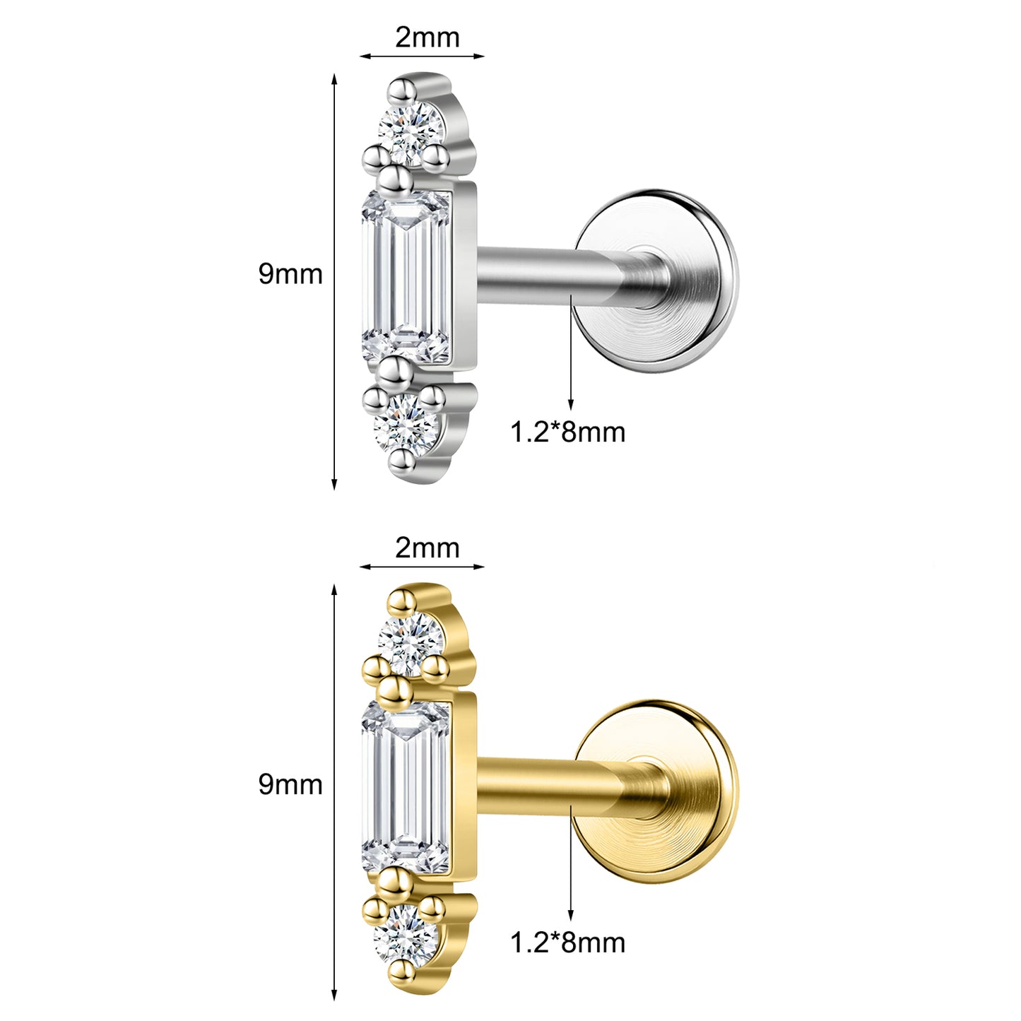 - Material: Labret Lip Studs made of 316L Stainless Steel and Cubic Zirconia.