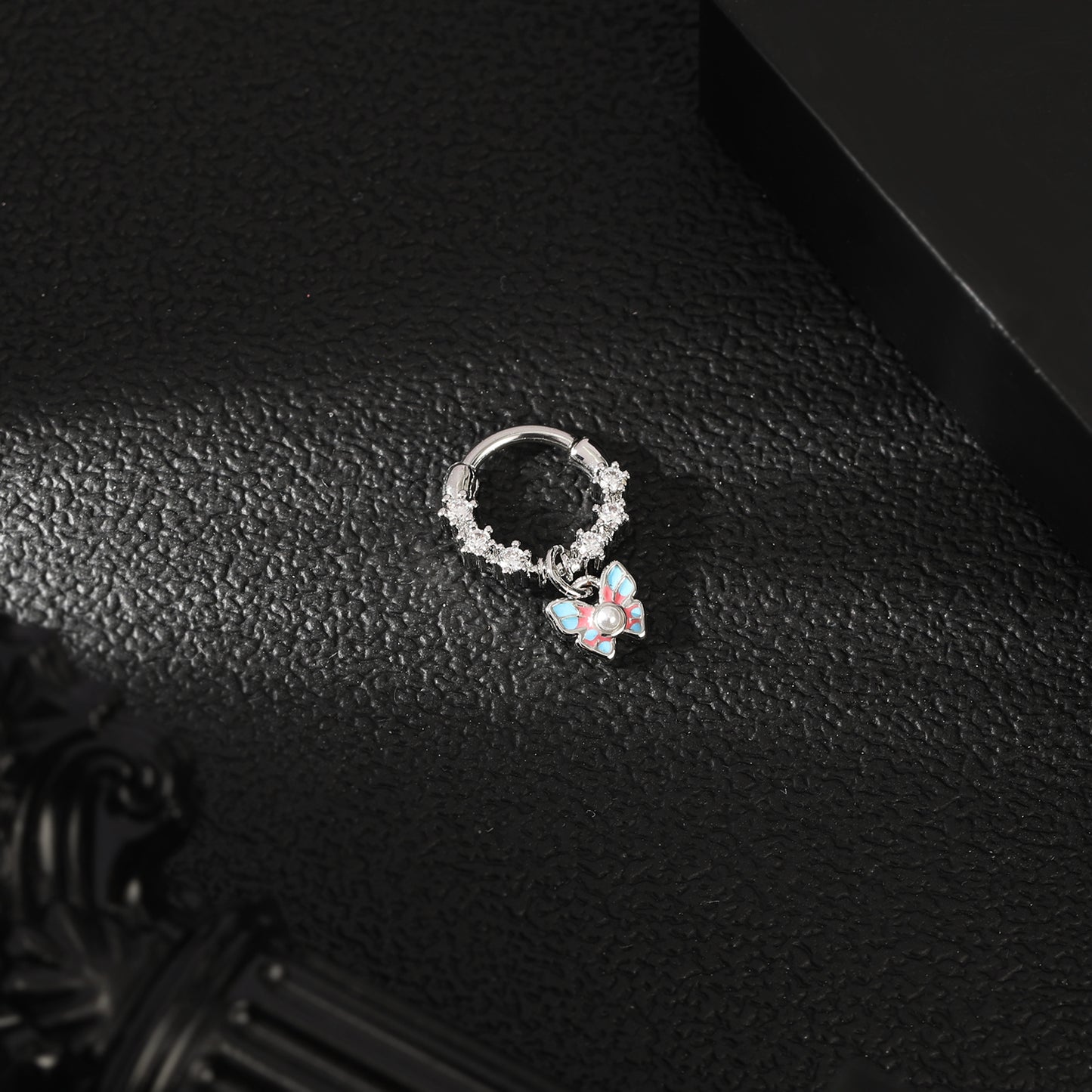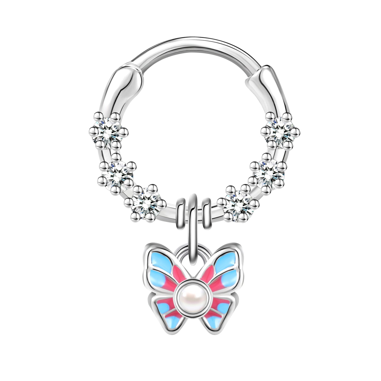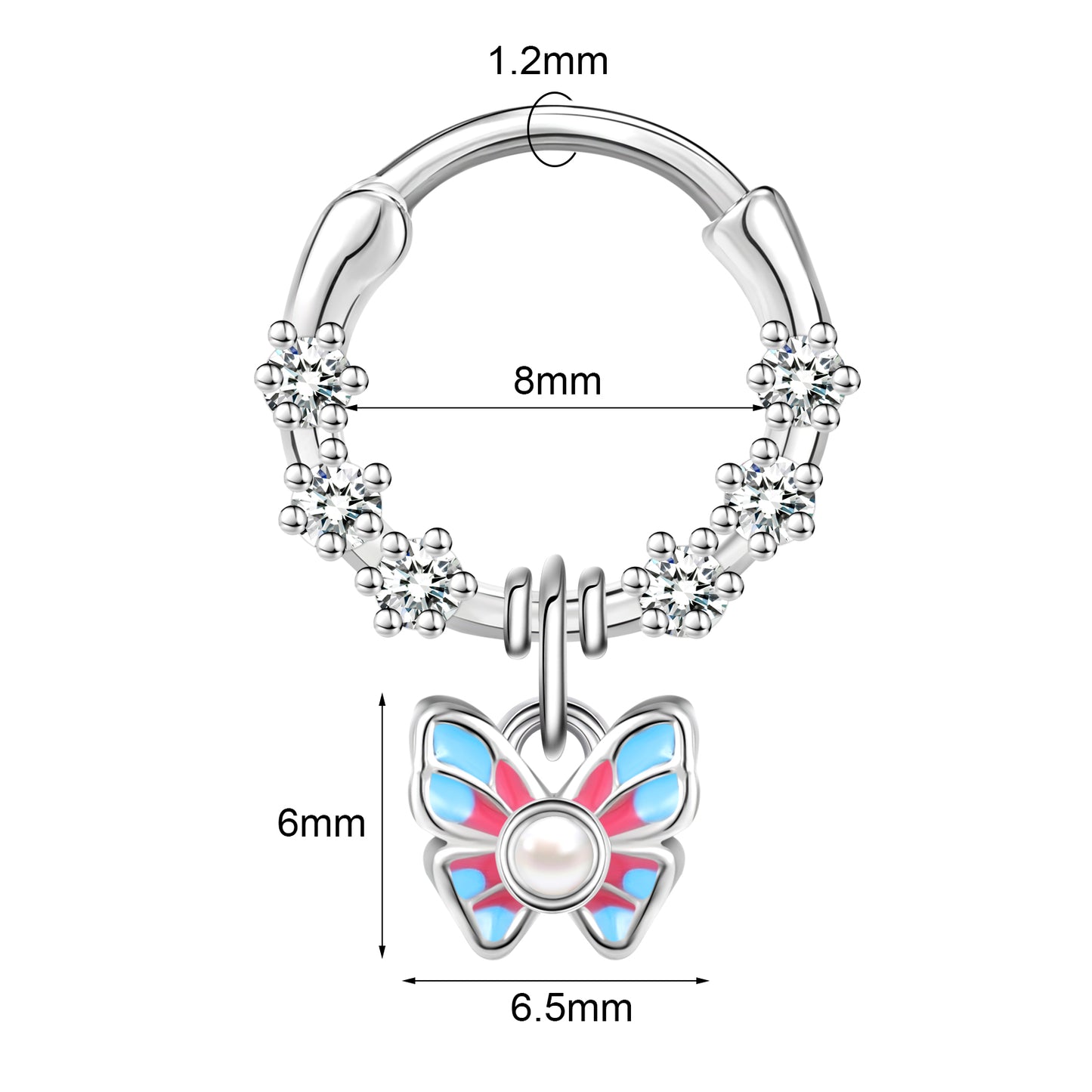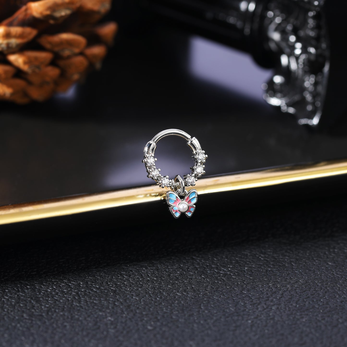 16g Butterfly Dangle Nose Ring Bling Zircon Septum Ring Piercing Jewelry