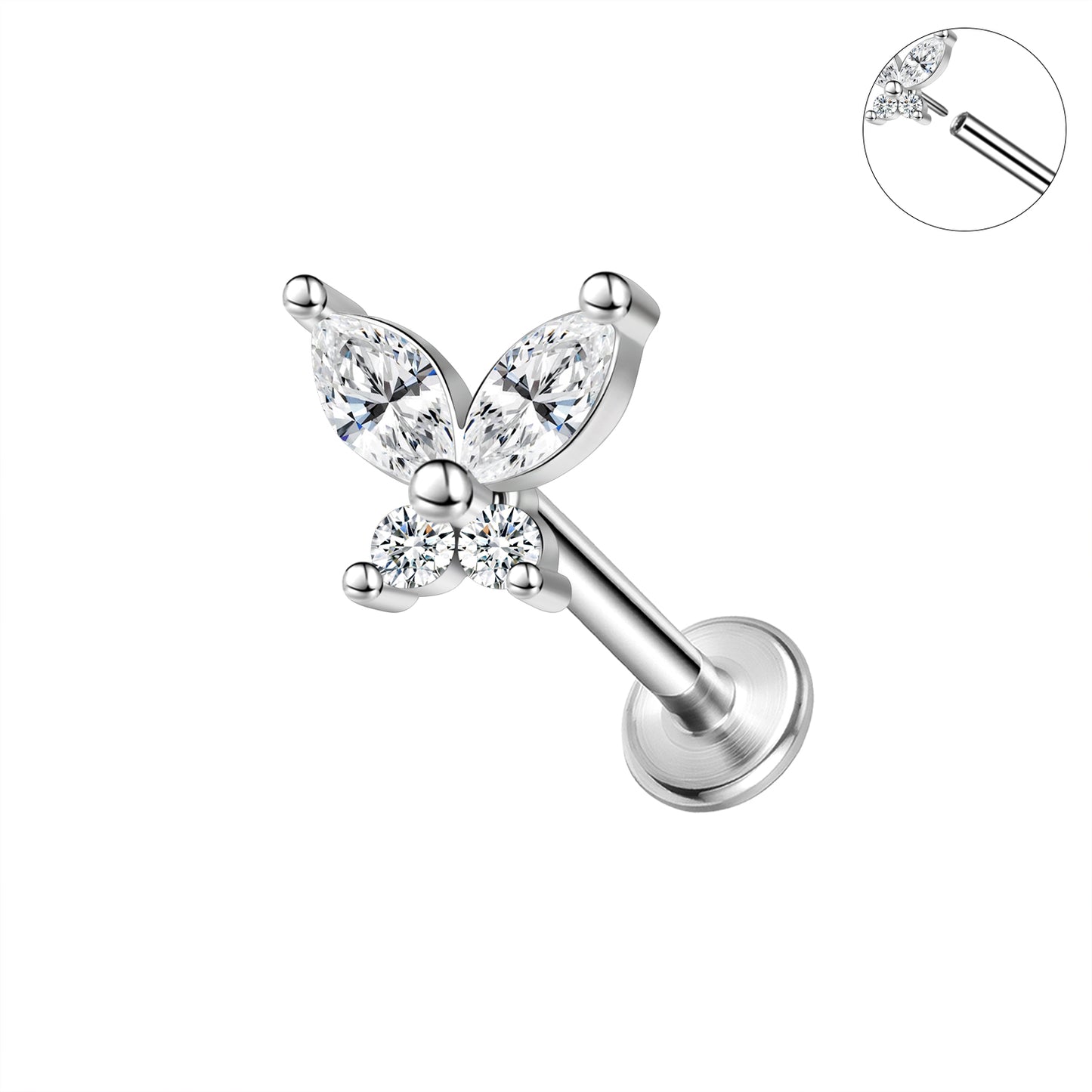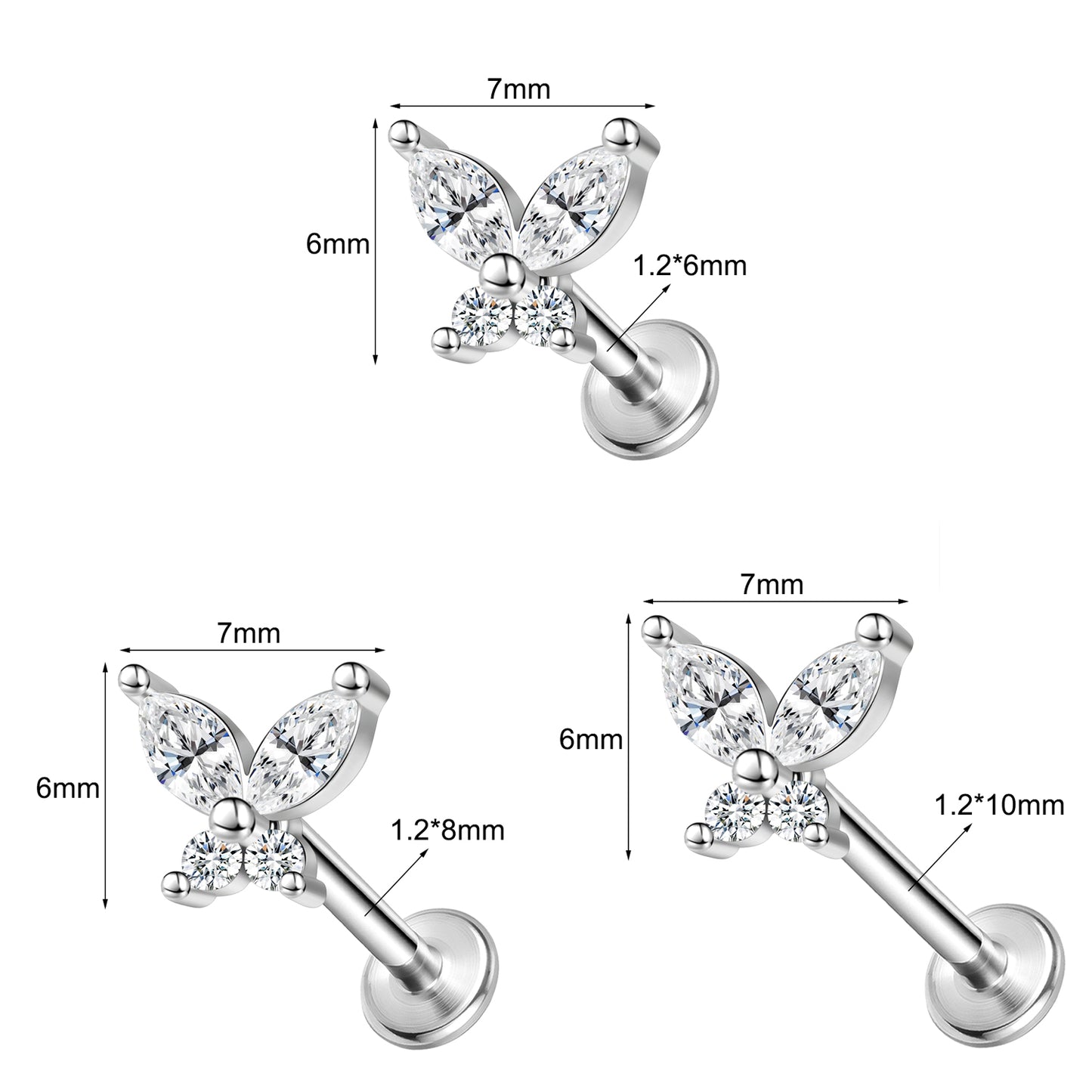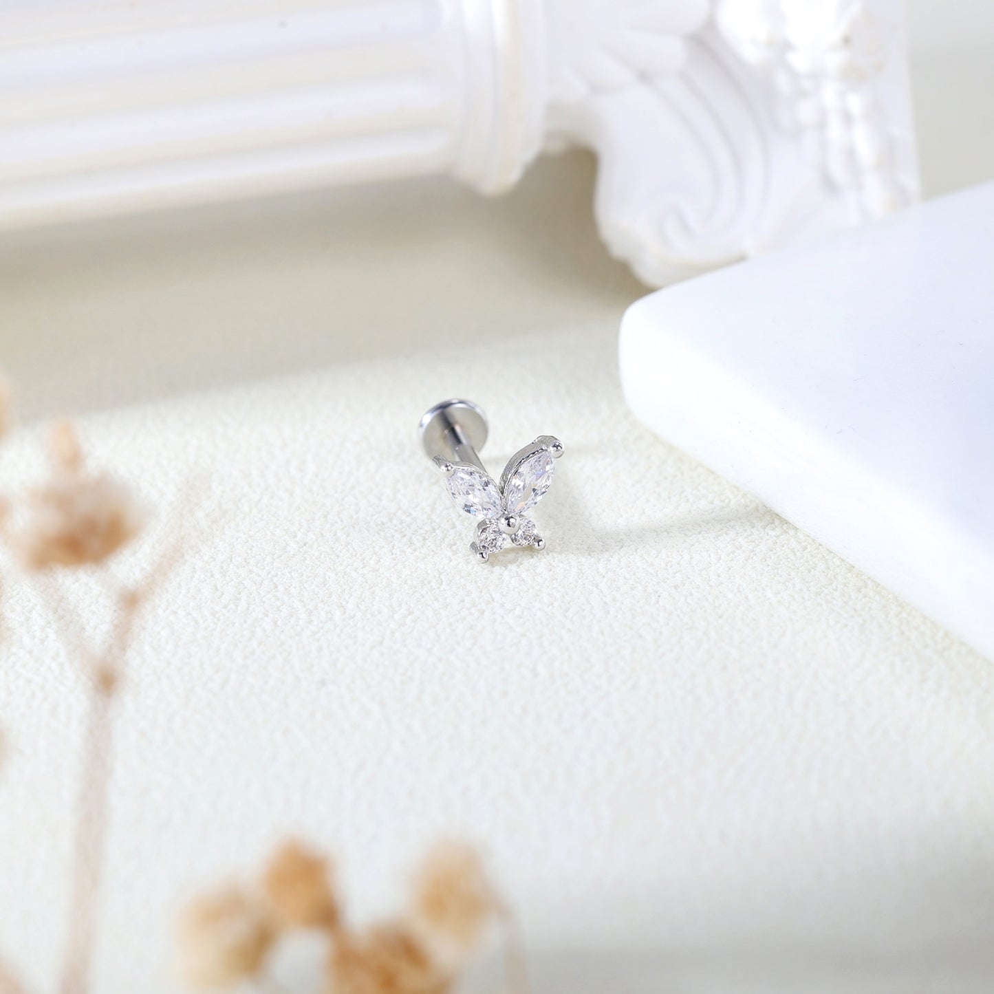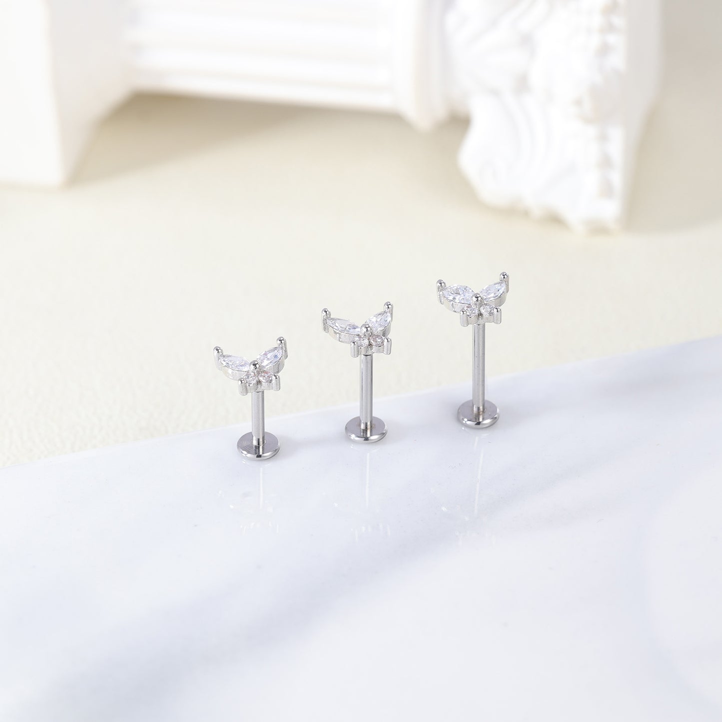 16g Butterfly Labret Ring Flat Back Stud Earring CZ Conch Helix Lip Piercing