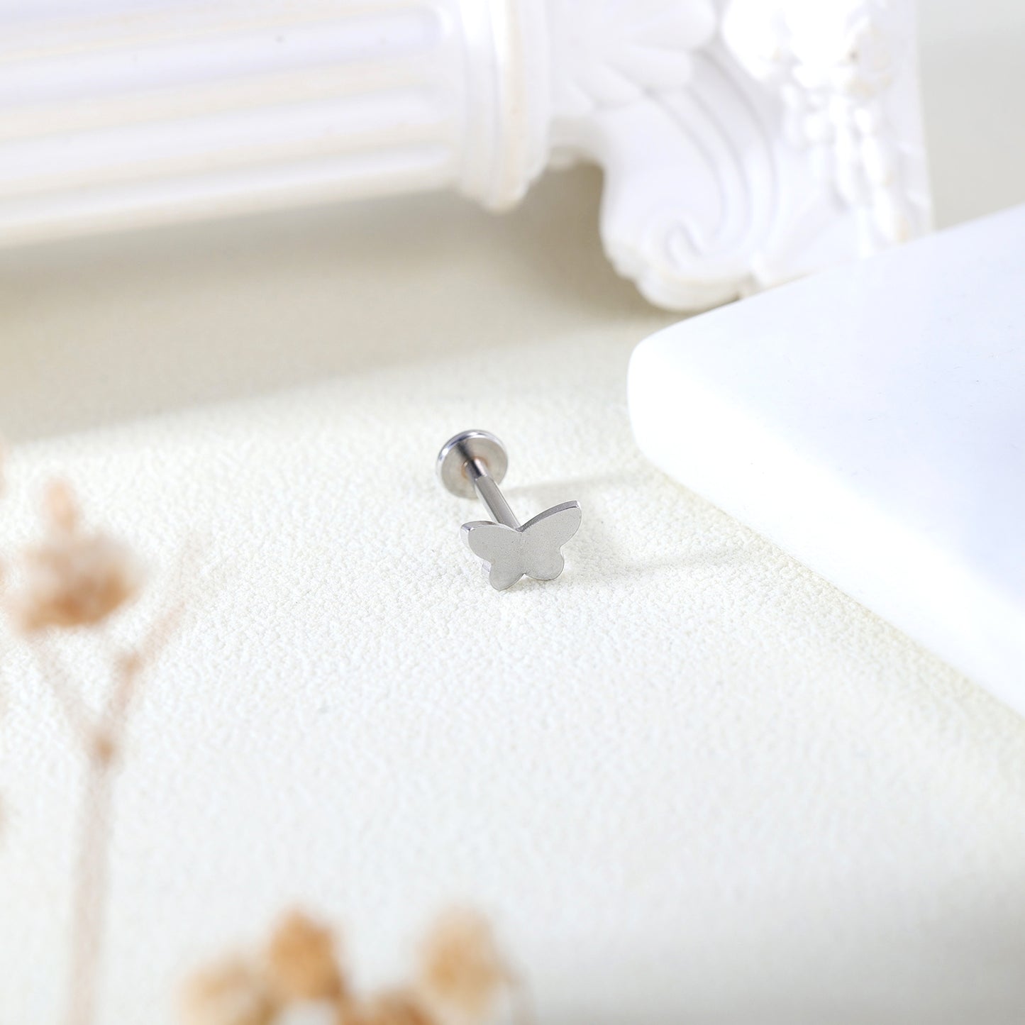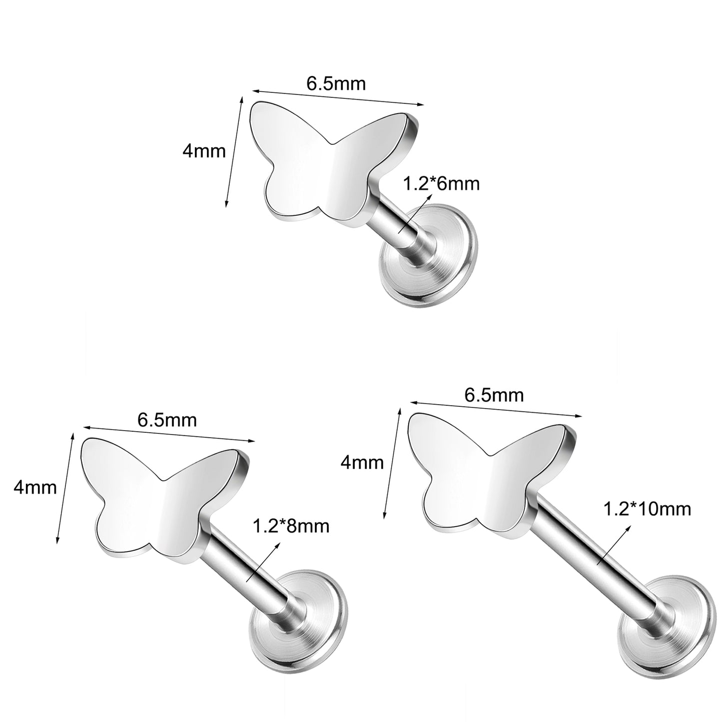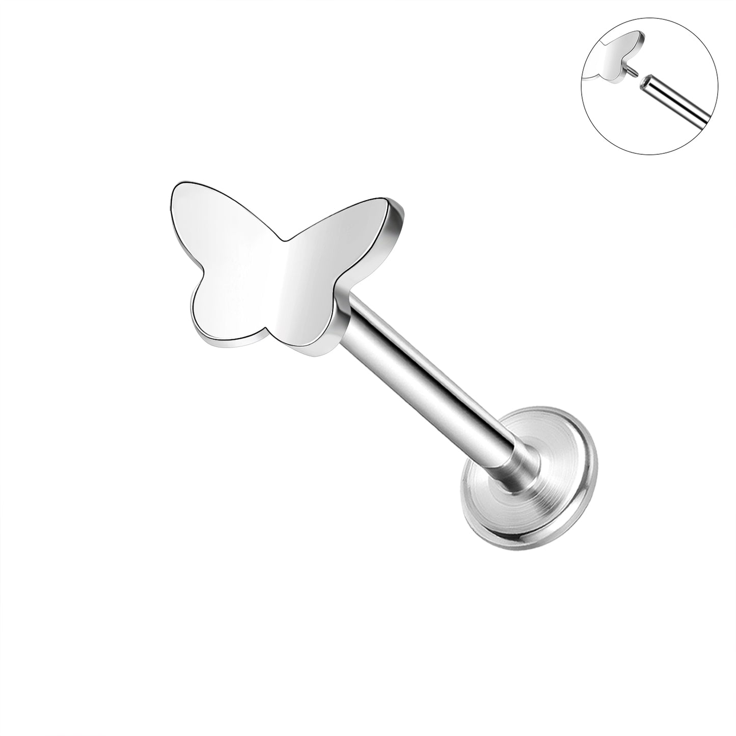 16g Butterfly Labret Ring Flat Back Stud Earring Push-in Conch Helix Lip Piercing
