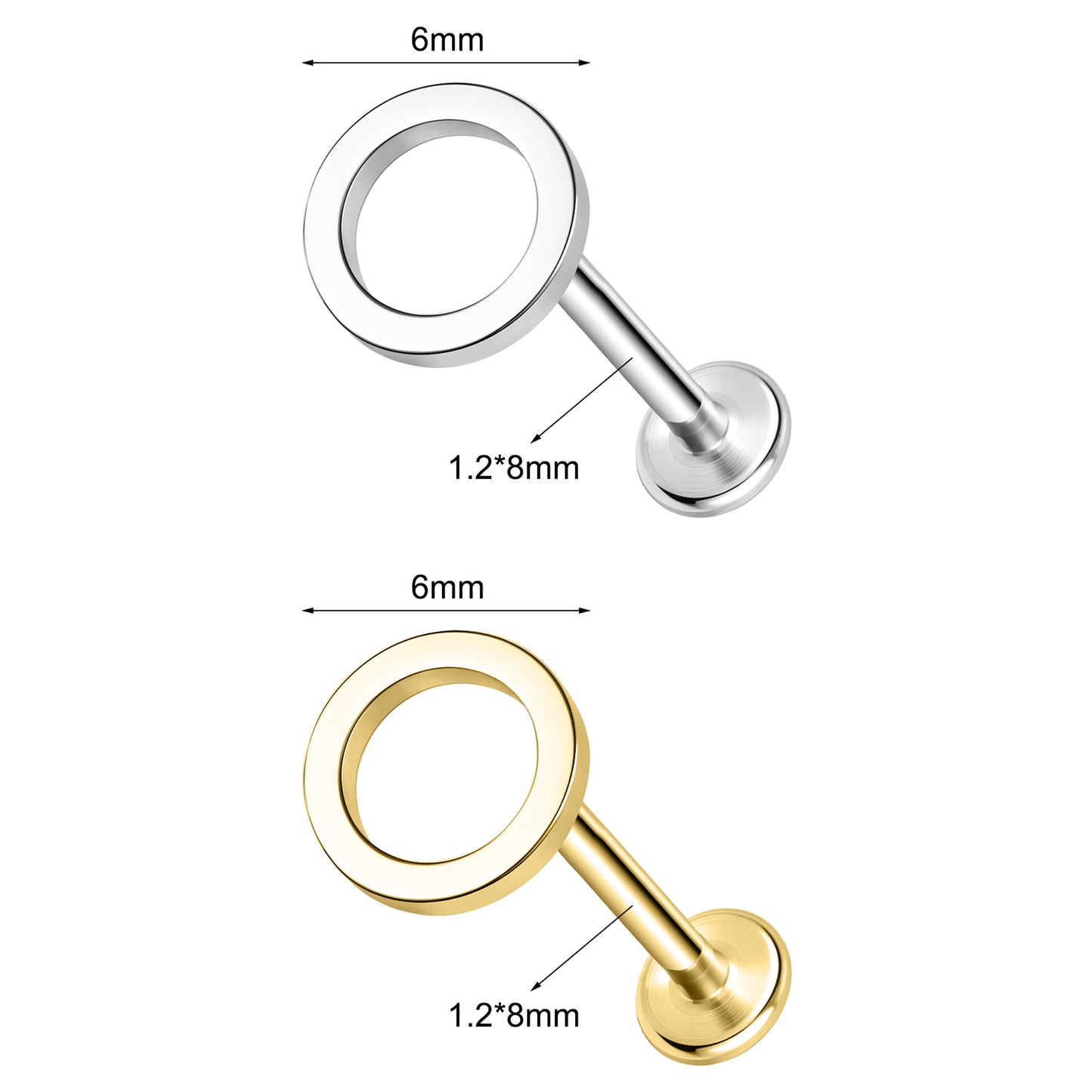 16g Circle Labret Ring Flat Back Stud Earring Conch Helix Lip Piercing