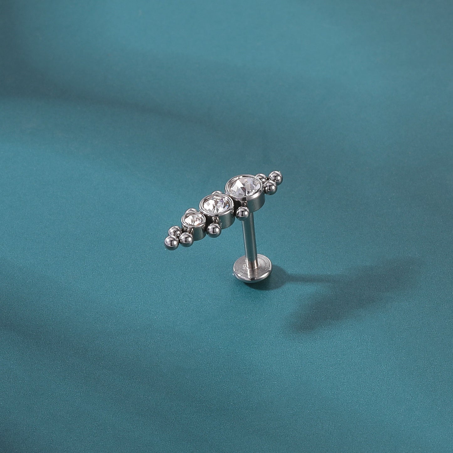 16G Crystal Ball Simple Stainless Steel Labret Rings Lip Tragus Helix Conch Piercing