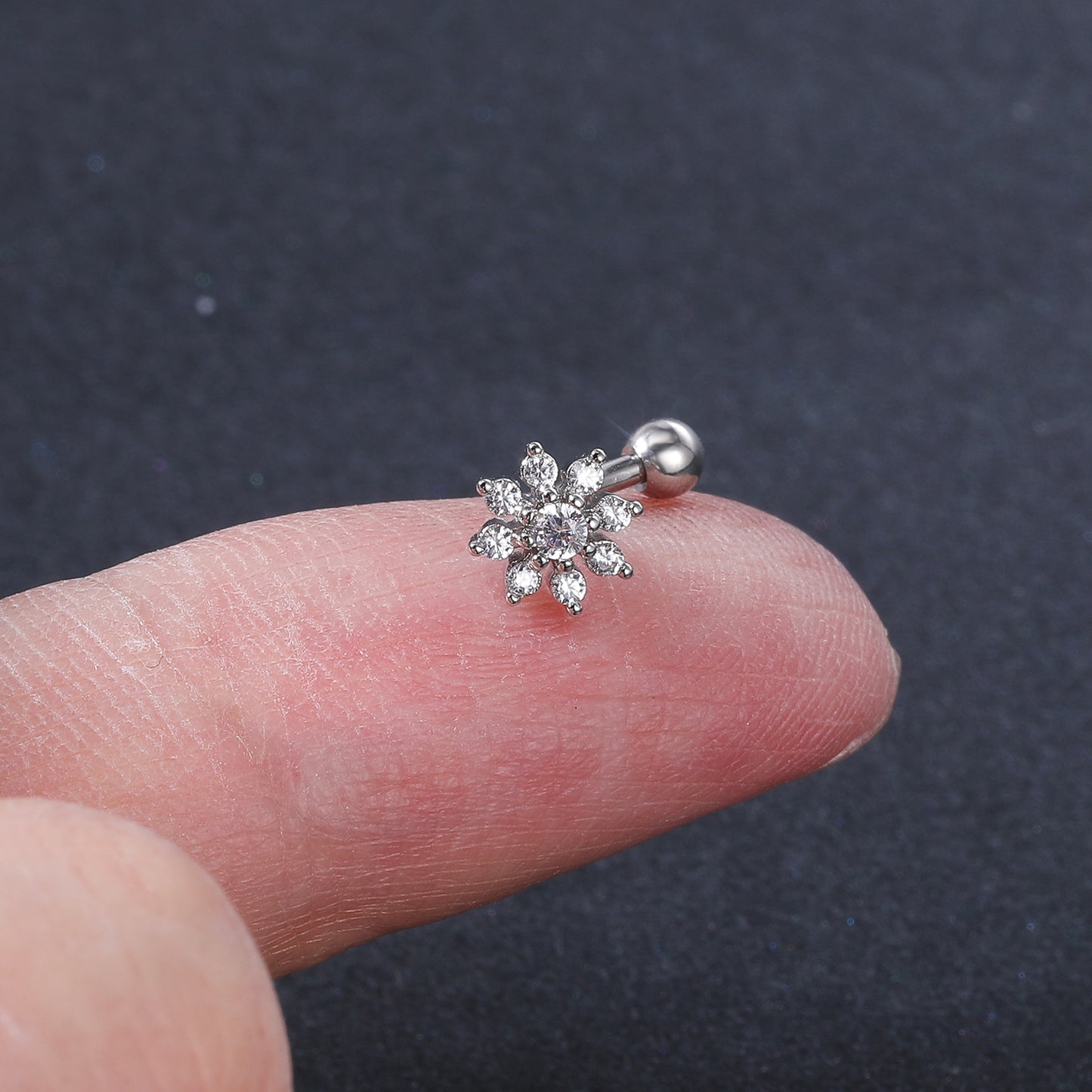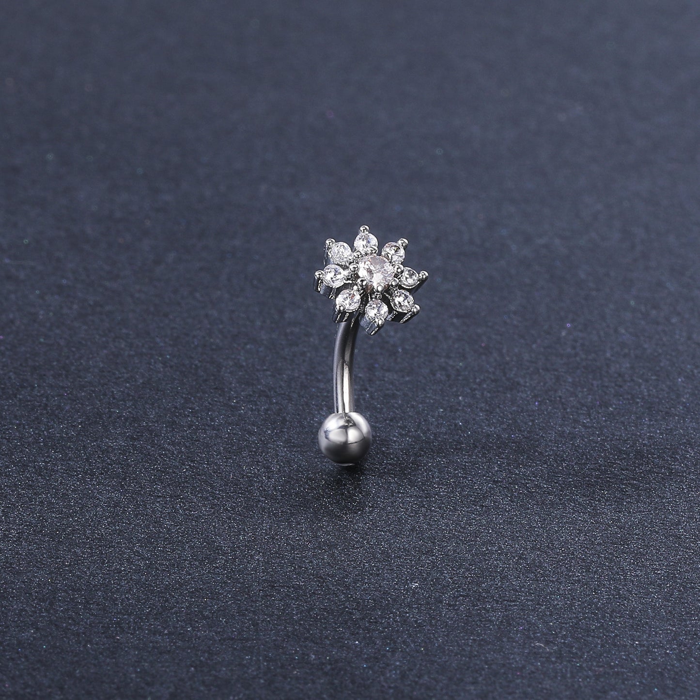 16g Flower Crystal Eyebrow Ring Piercing Barbell Curved Helix Daith Rook Piercing