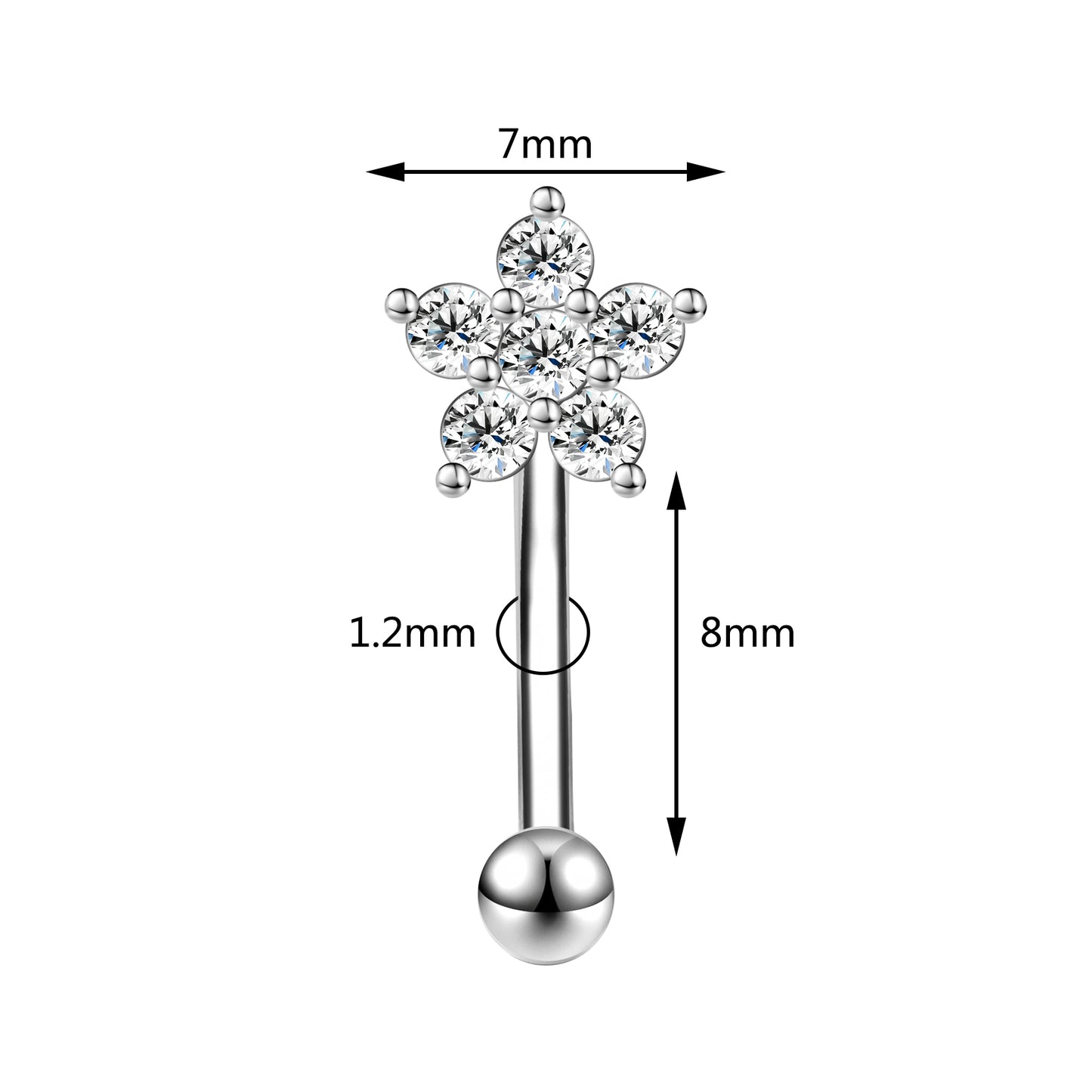 16g Flower Eyebrow Ring CZ Eyrbrow Piercing Helix Rook Daith Piercing