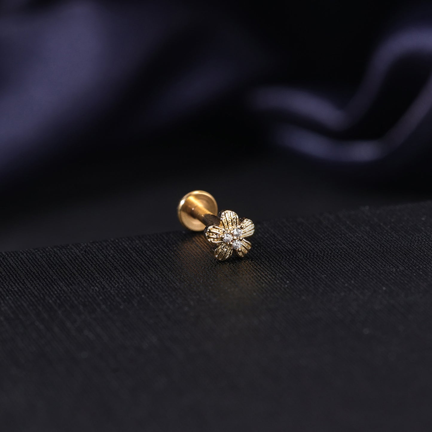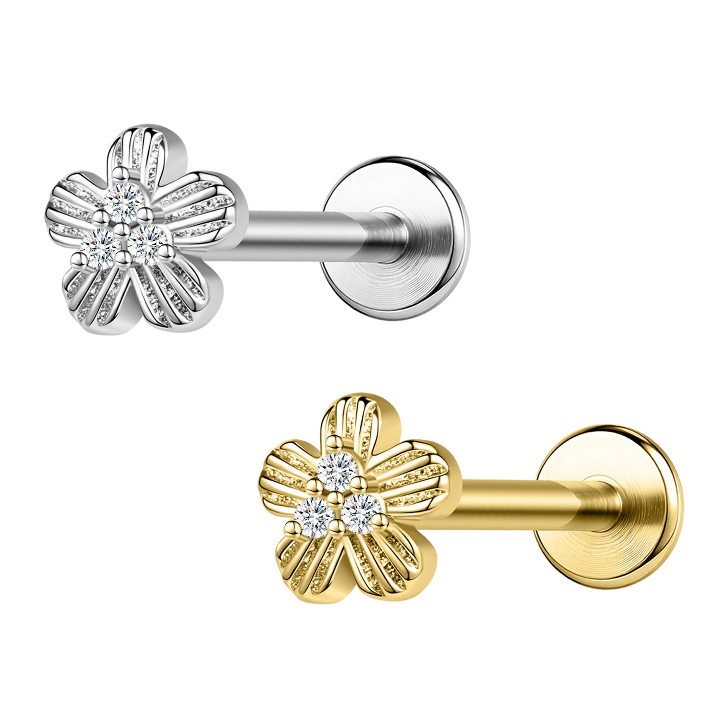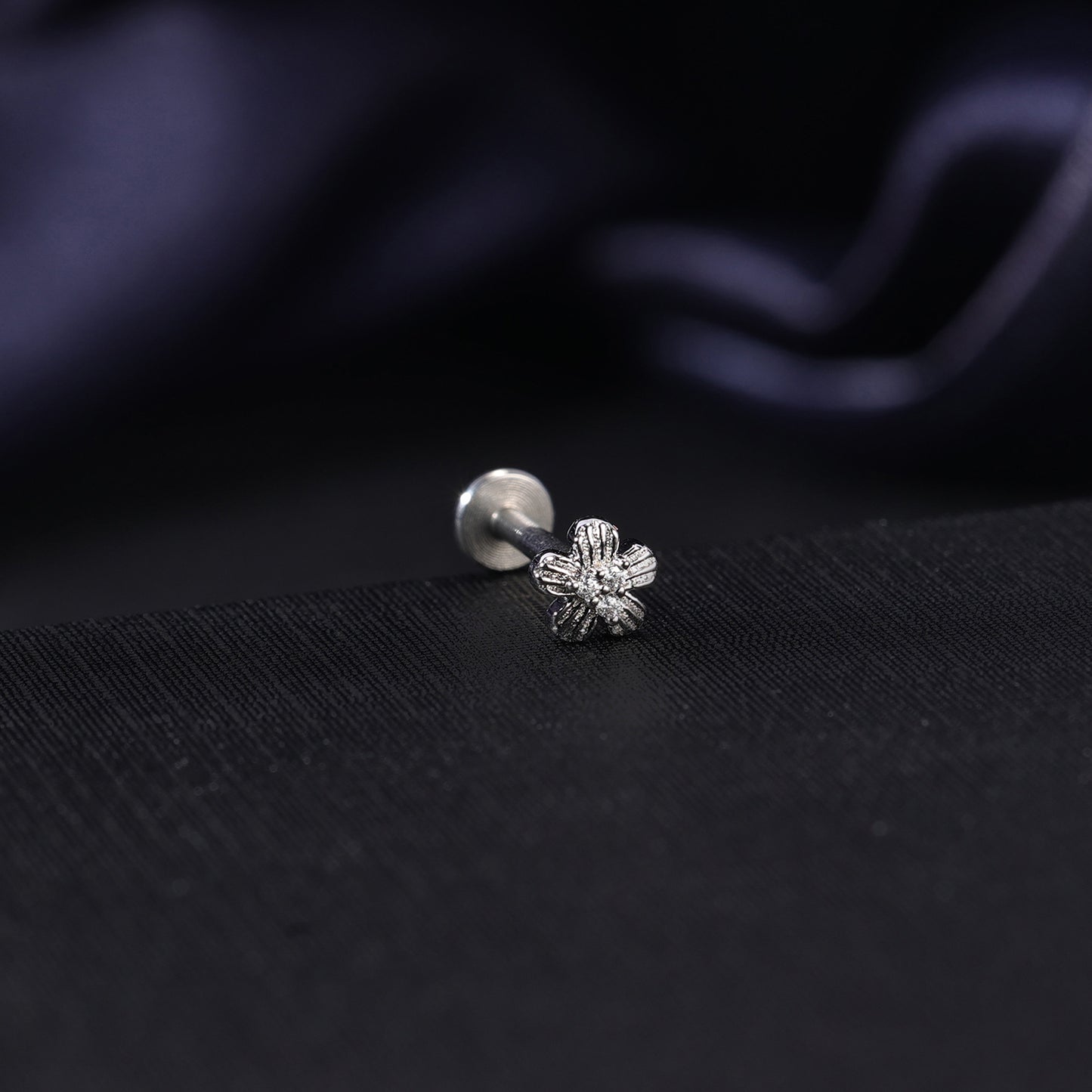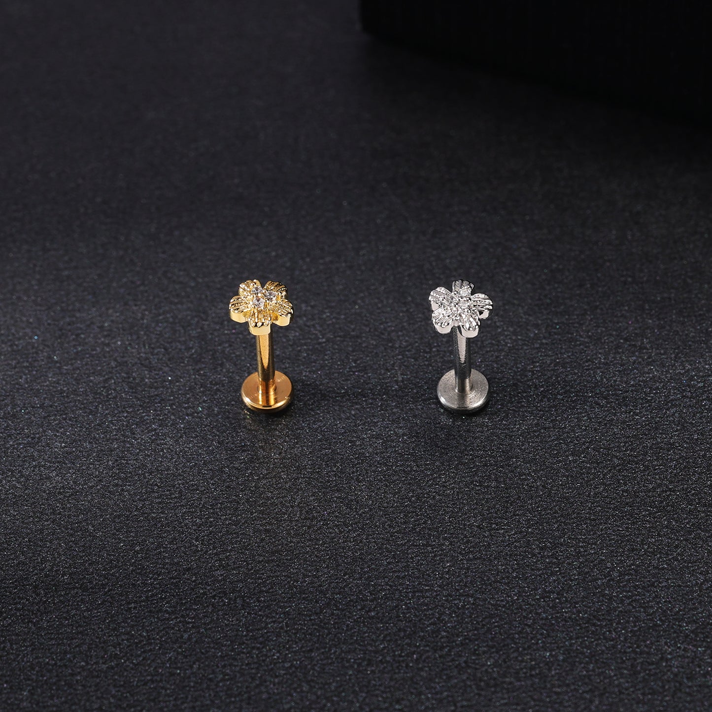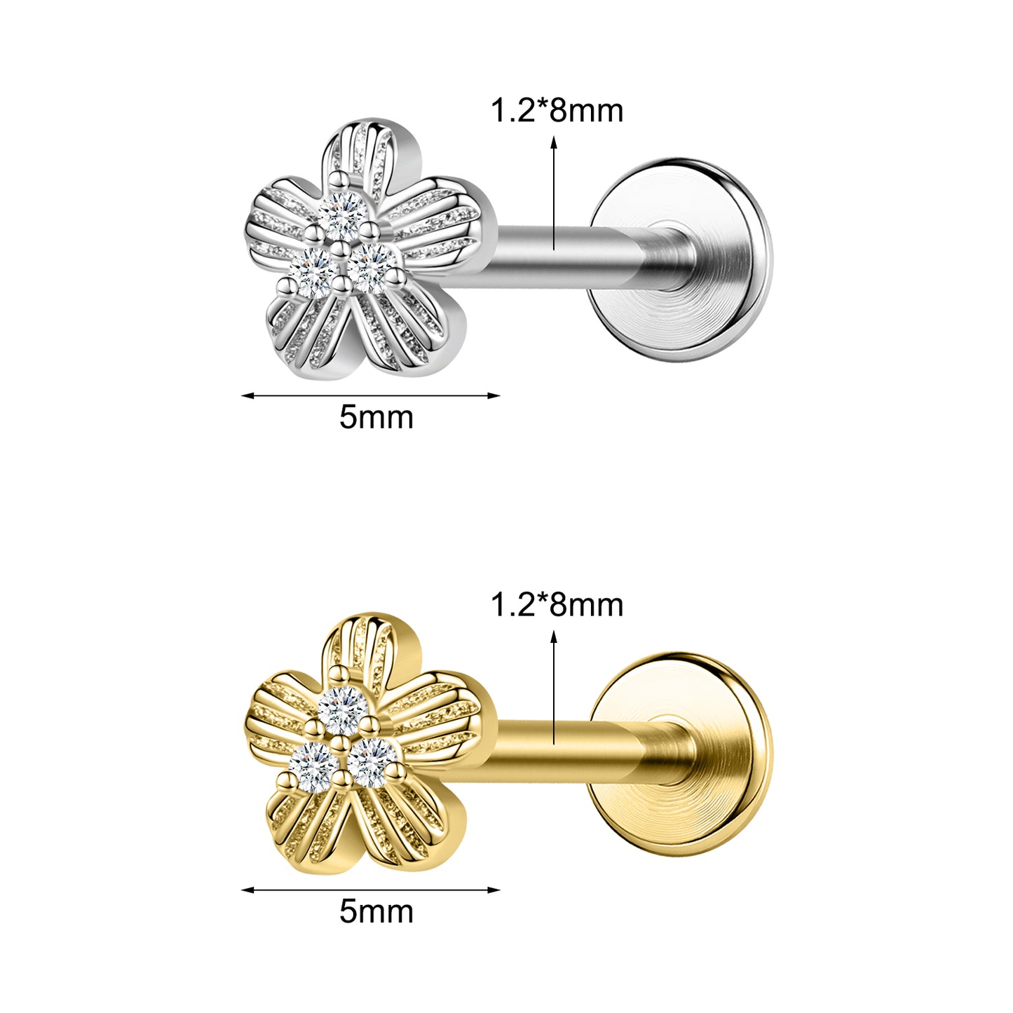 16g Flower Labret Ring Flat Back Stud Earring CZ Conch Helix Lip Piercing