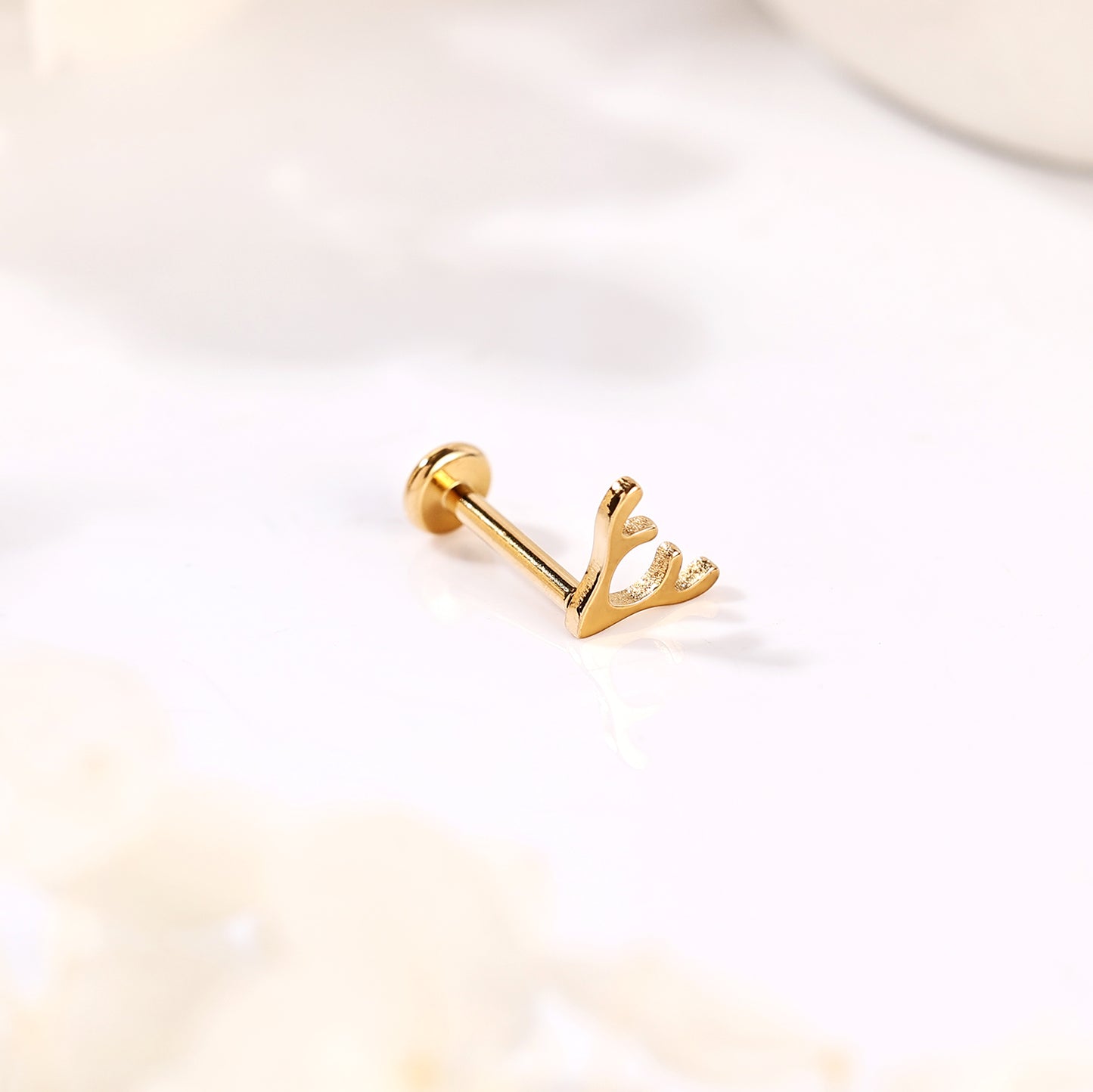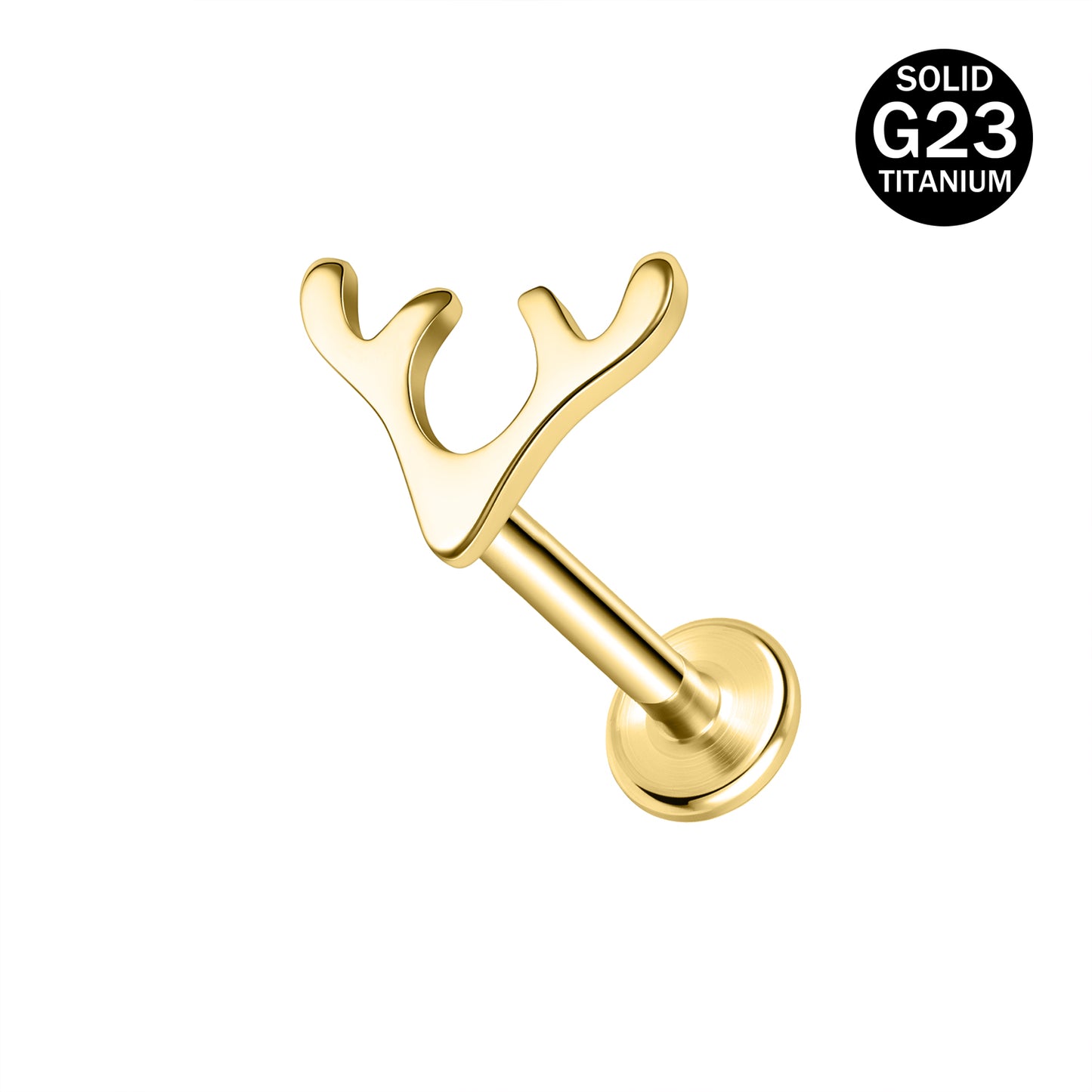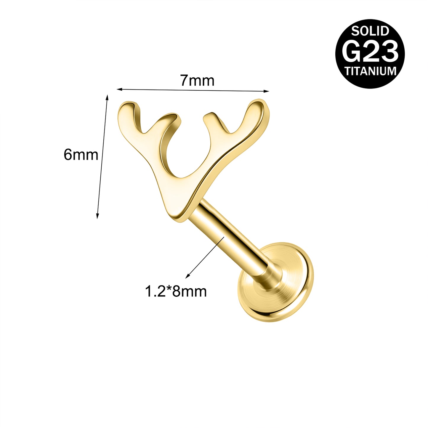 16g G23 Titanium Labret Ring Antler Stud Earring Threaded Conch Helix Lip Piercing