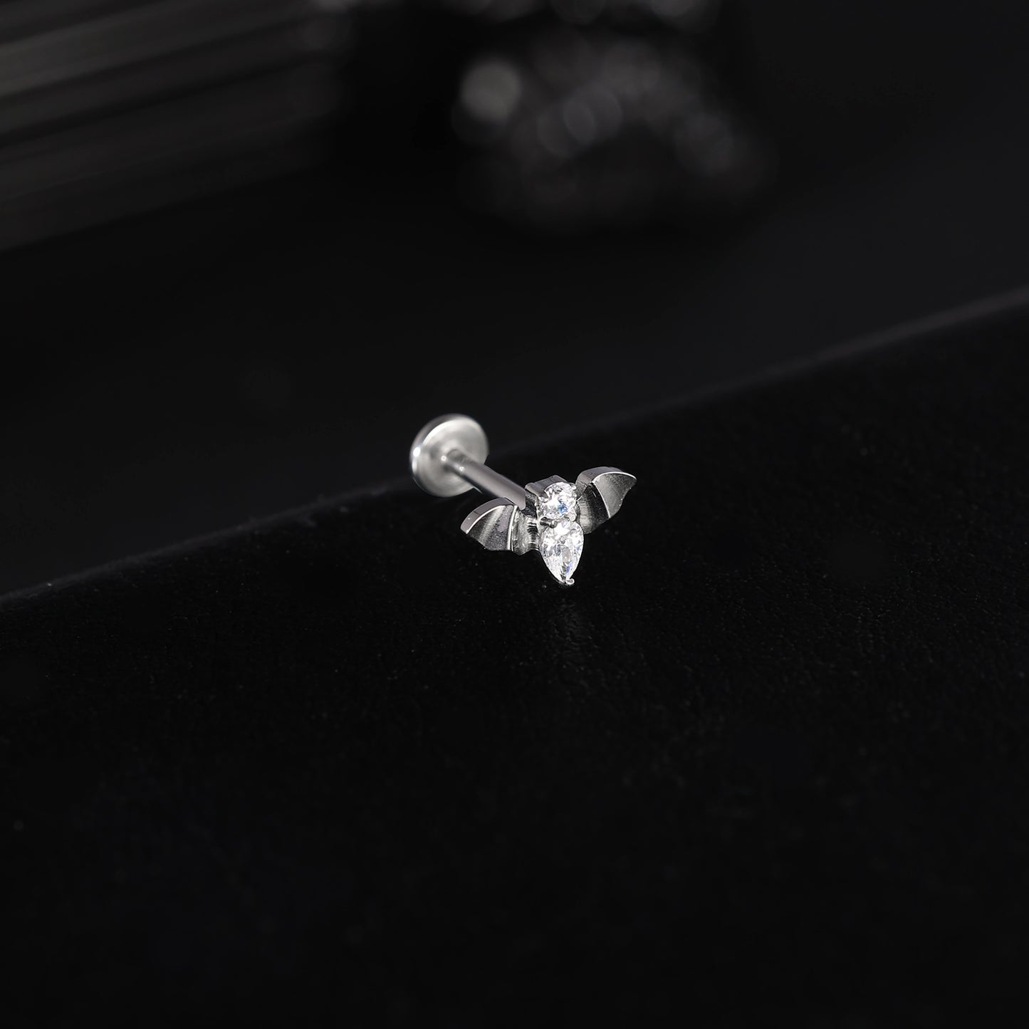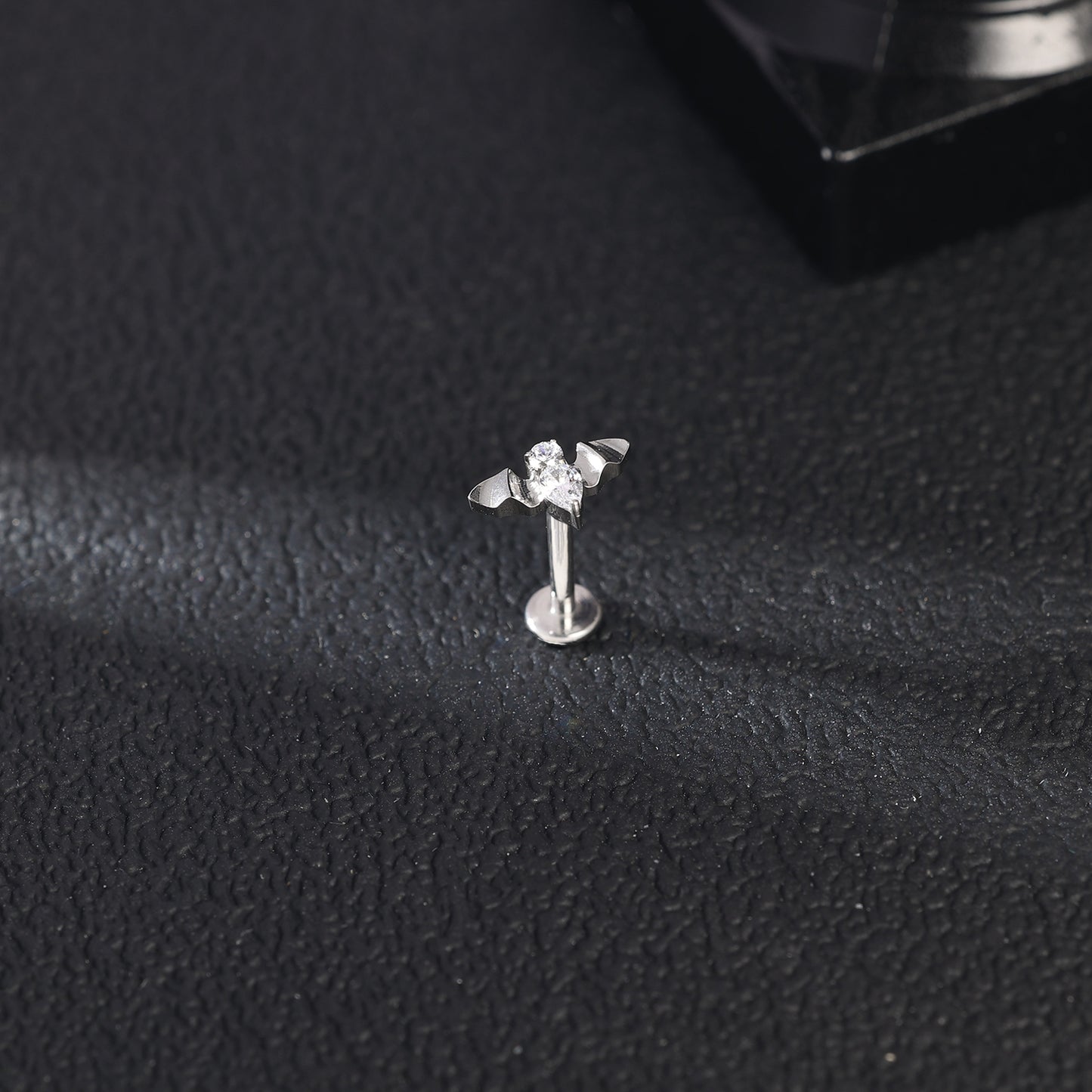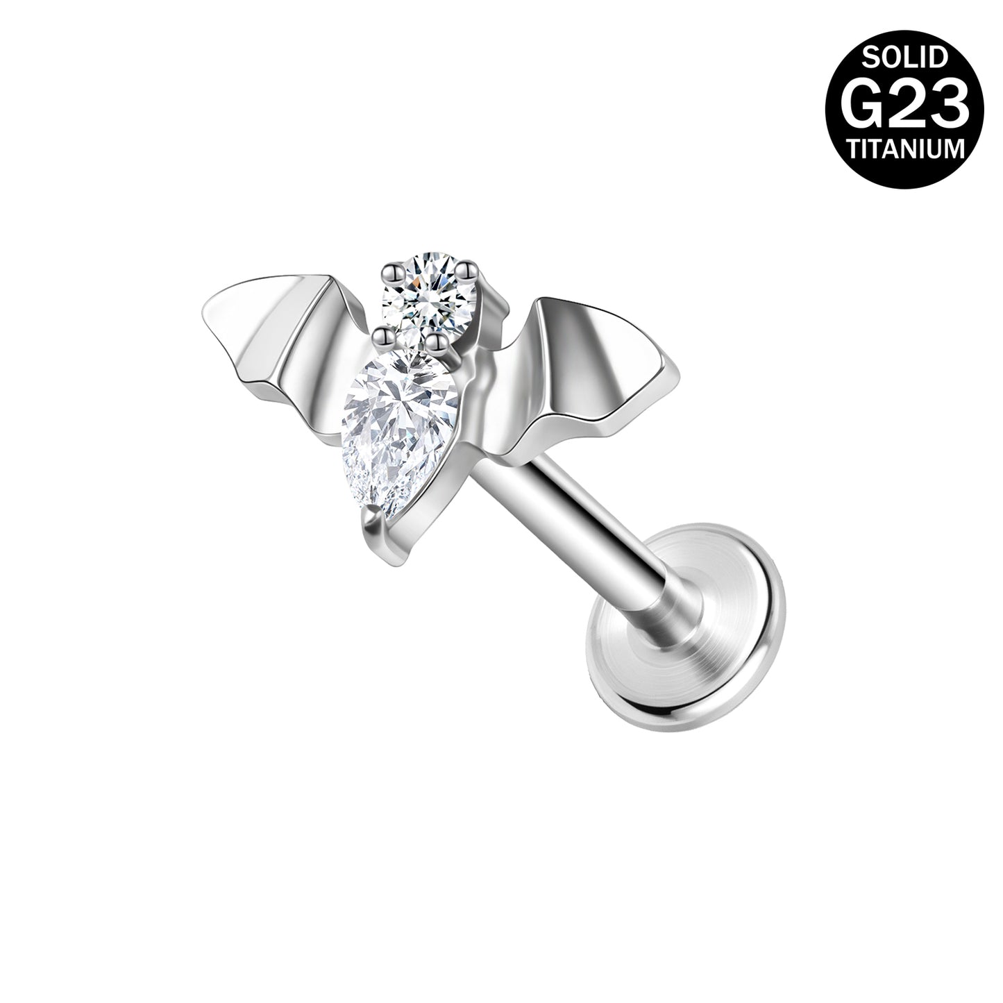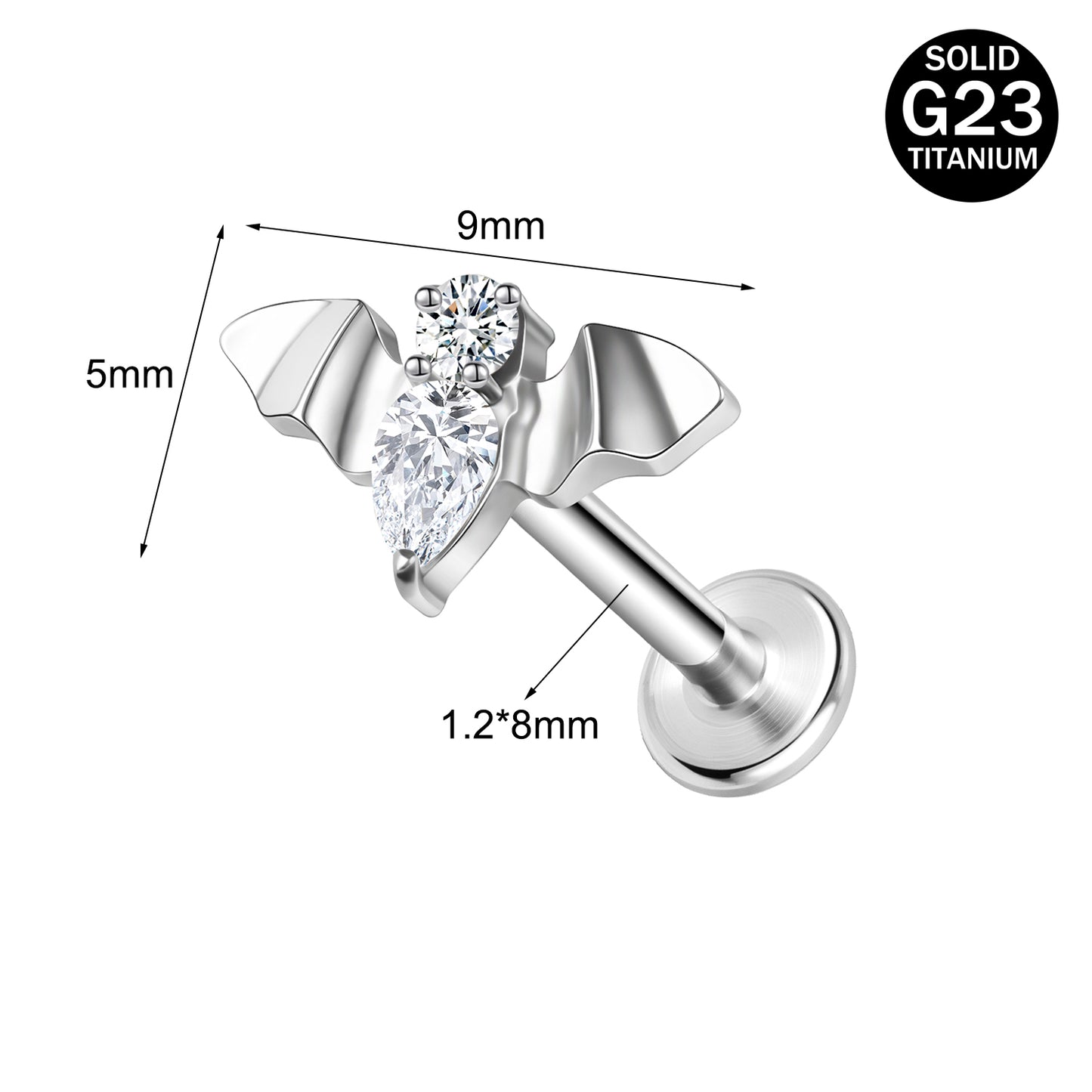 16g G23 Titanium Labret Ring Bat Stud Earring Threaded Conch Helix Lip Piercing