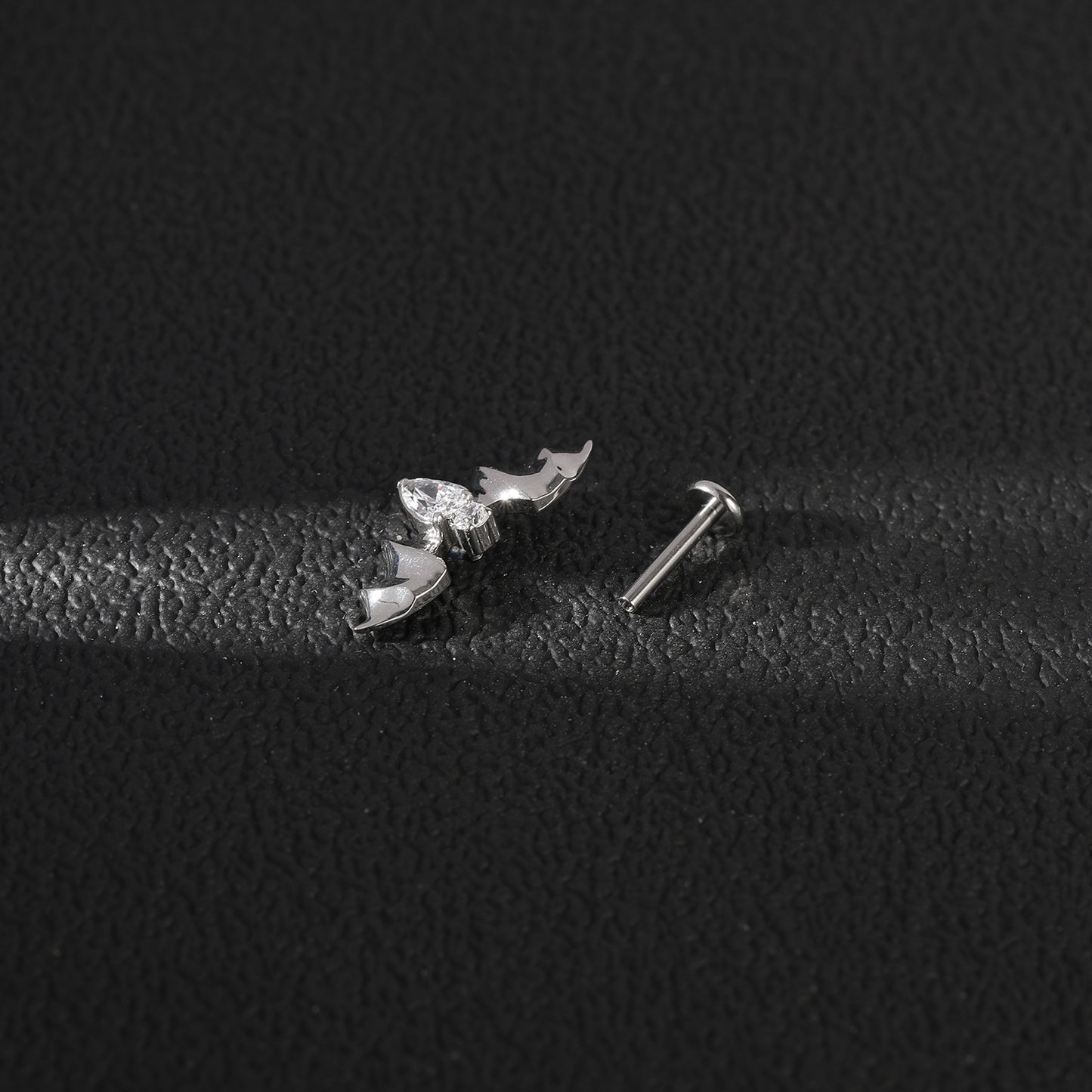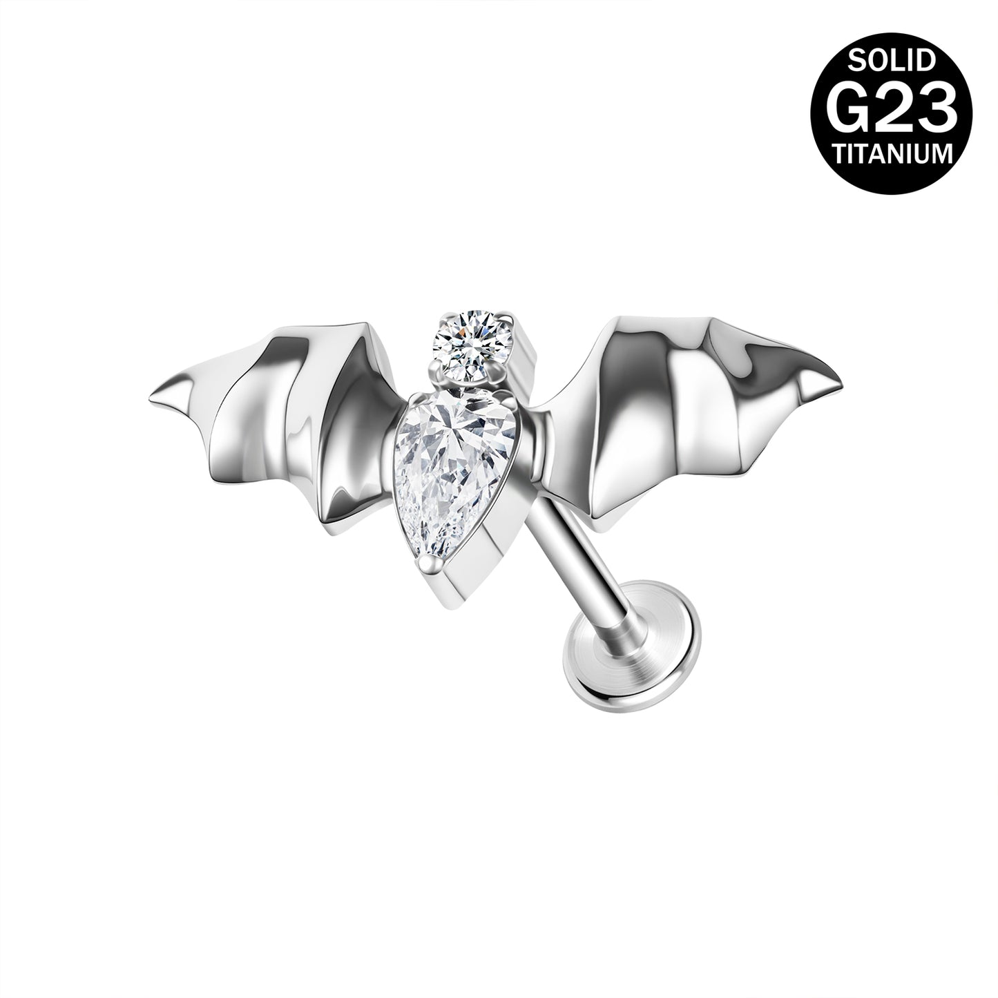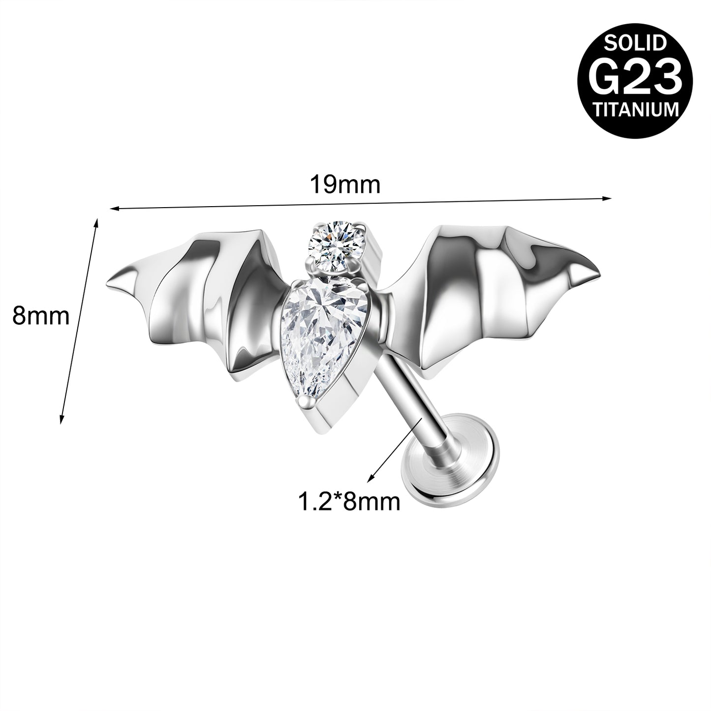 16g G23 Titanium Labret Ring Bat Stud Earring Threaded Conch Helix Lip Piercing
