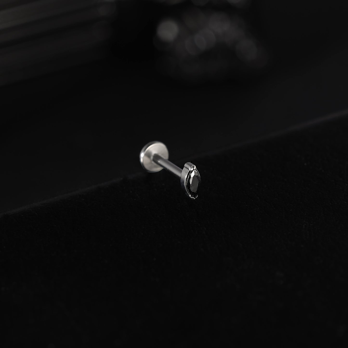 16g G23 Titanium Labret Ring Black Zircon Stud Earring Threaded Conch Helix Lip Piercing