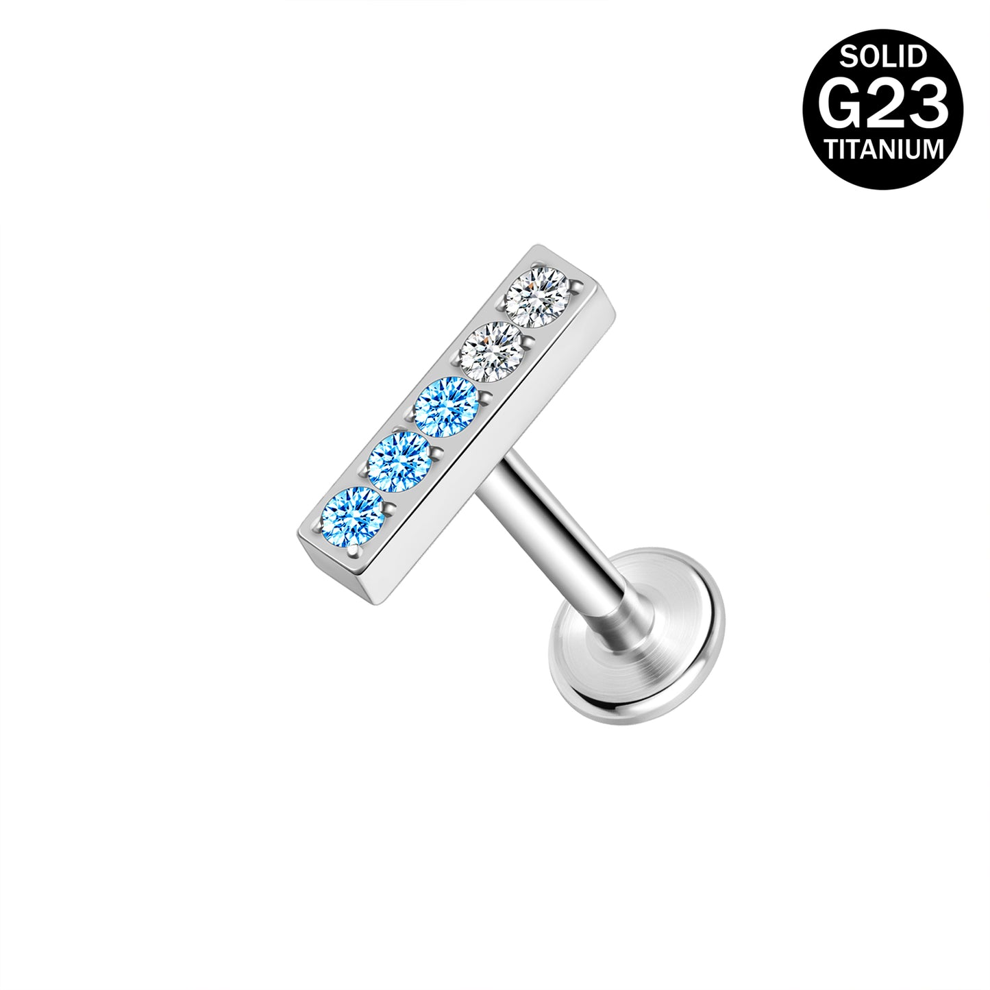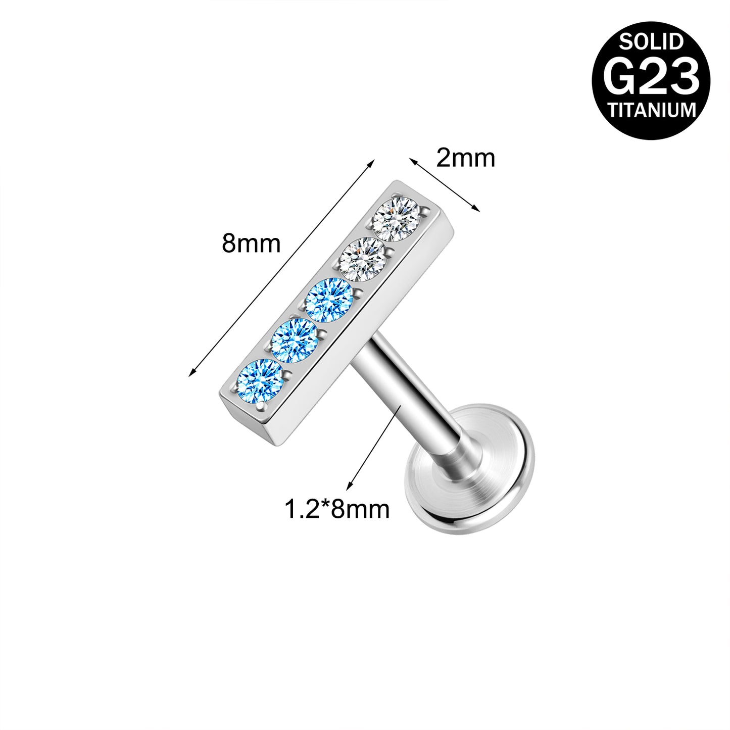 16g G23 Titanium Labret Ring Blue Zircon Stud Earring Threaded Conch Helix Lip Piercing