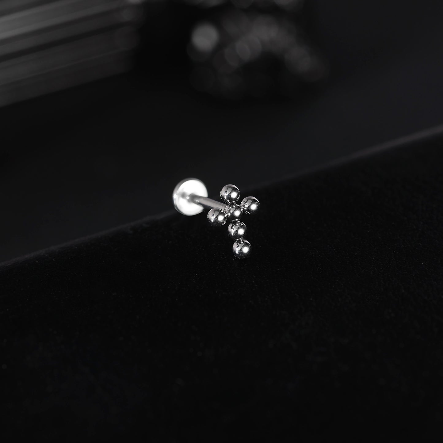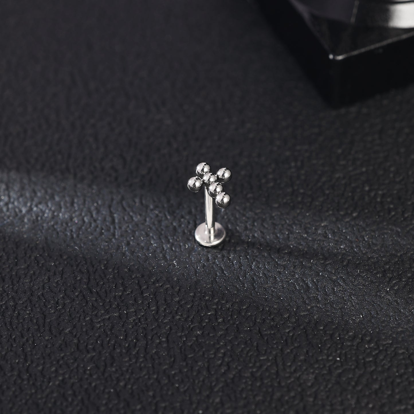 16g G23 Titanium Labret Ring Cross Stud Earring Threaded Conch Helix Lip Piercing