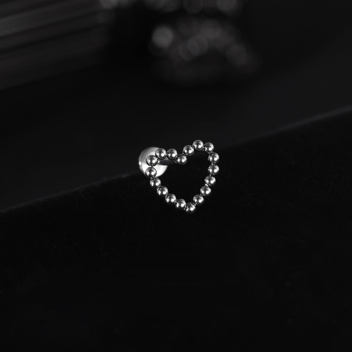 16g G23 Titanium Labret Ring Heart Stud Earring Threaded Conch Helix Lip Piercing