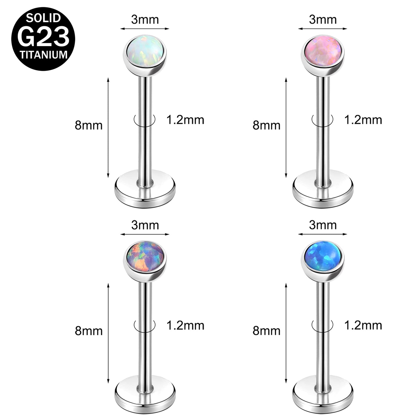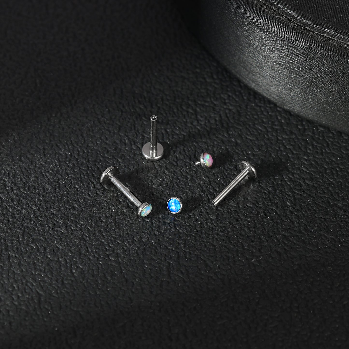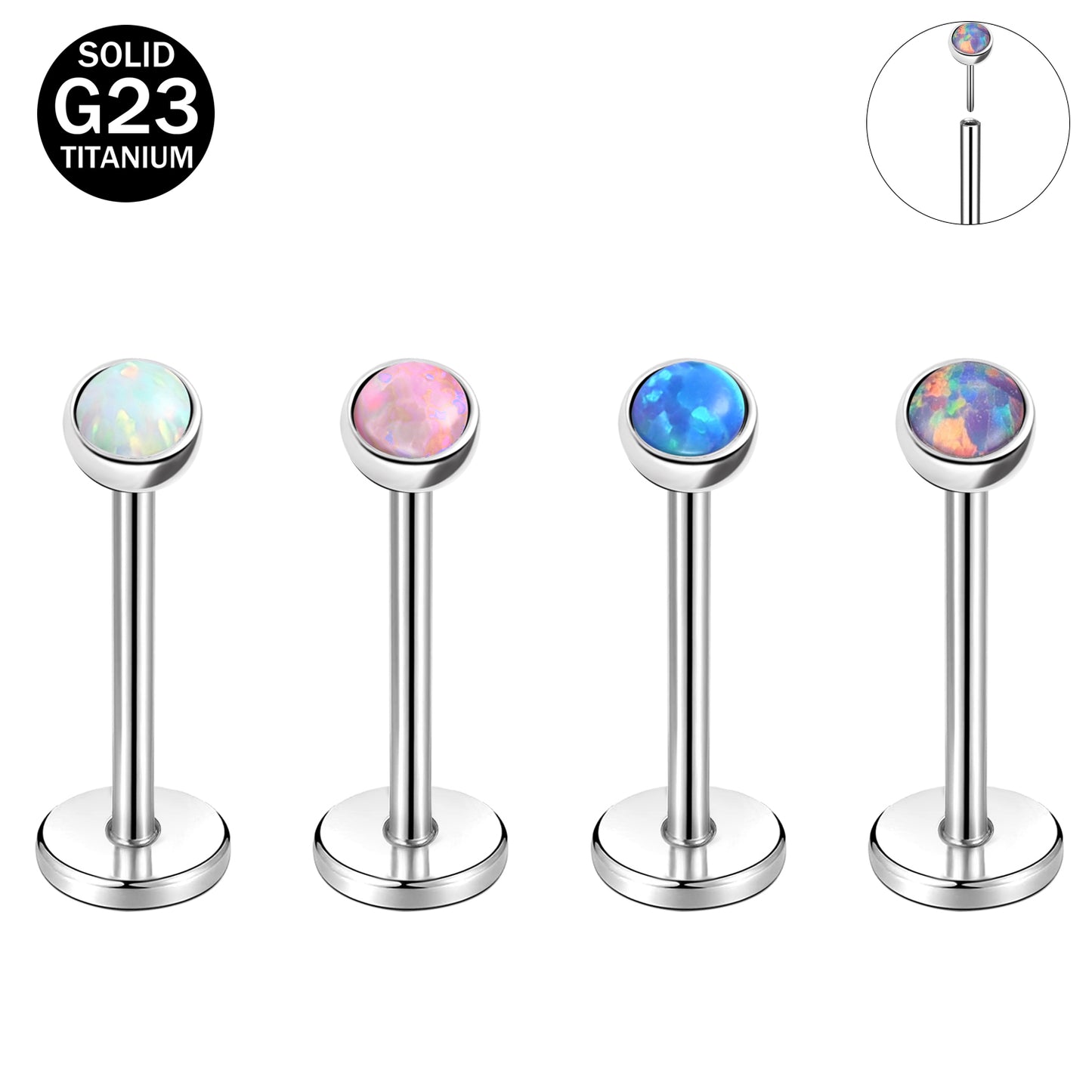 16g G23 Titanium Labret Ring Opal Stud Earring Threaded Conch Helix Lip Piercing