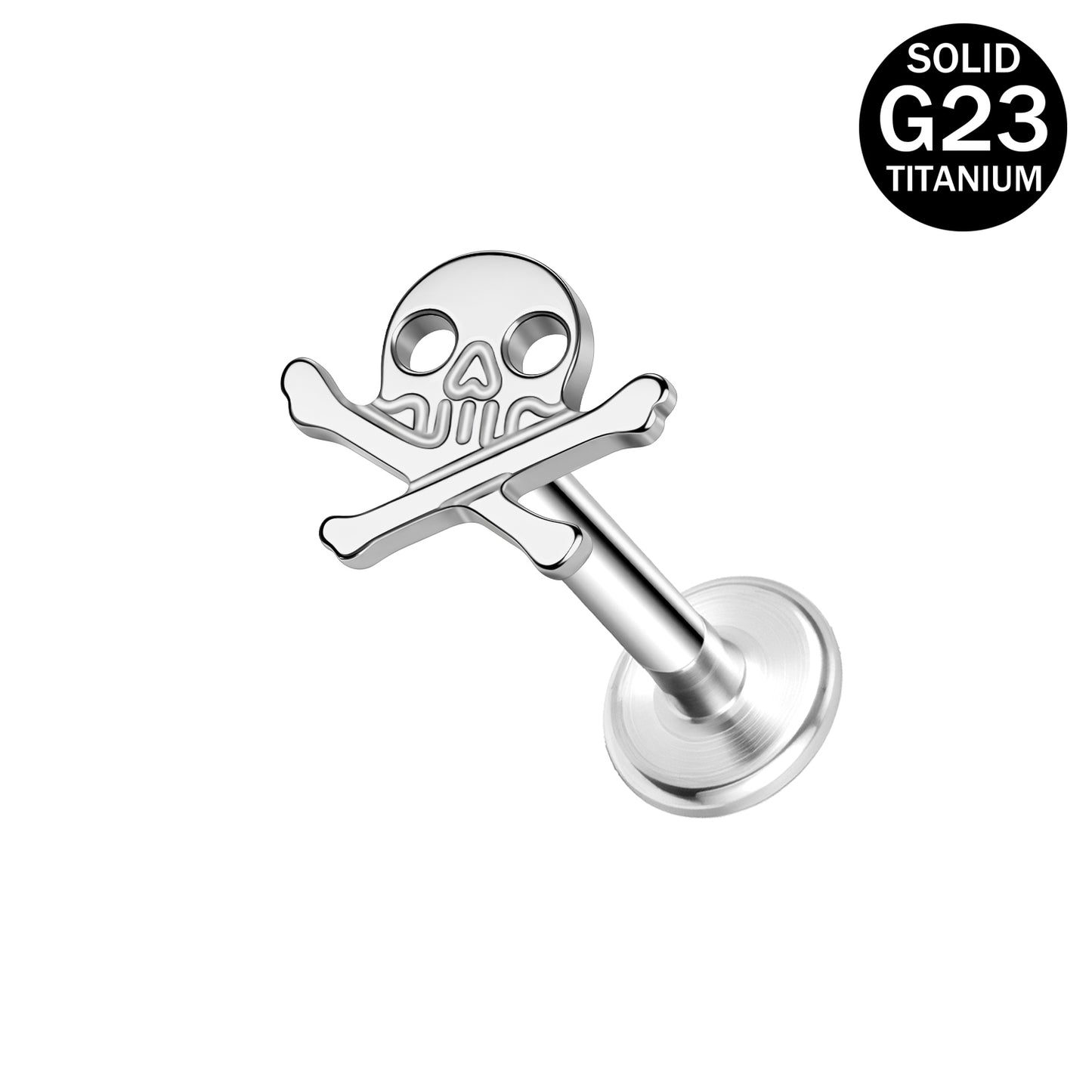 16g G23 Titanium Labret Ring Skull Stud Earring Threaded Conch Helix Lip Piercing