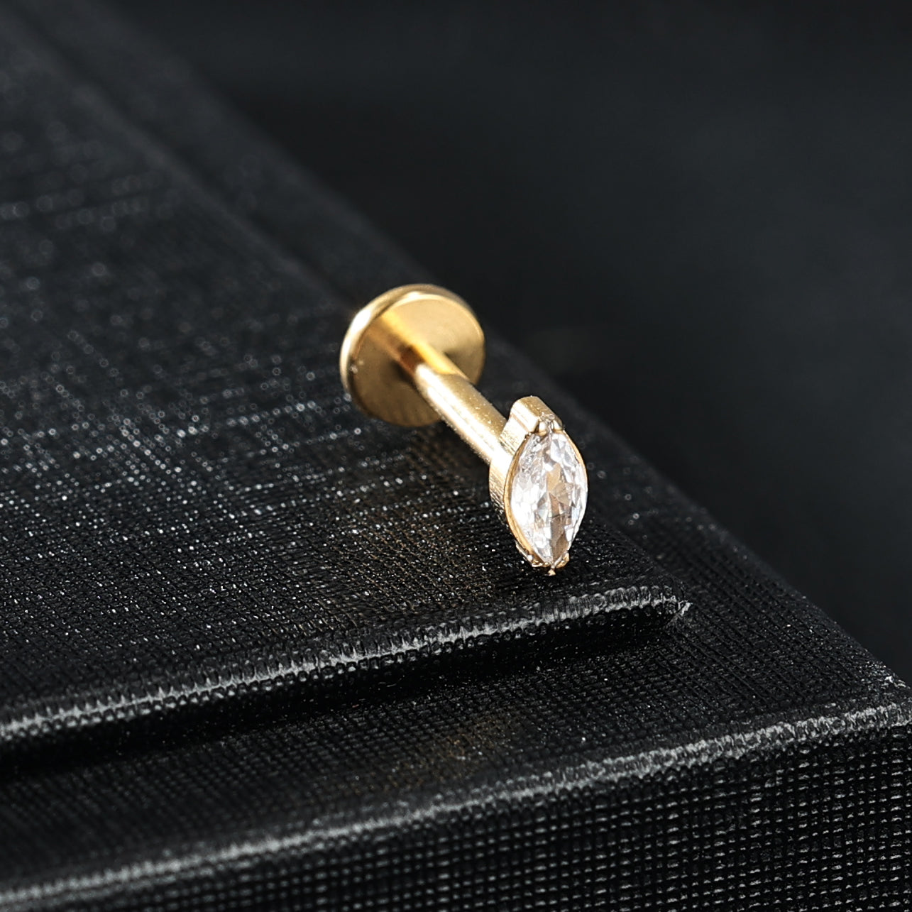 16g G23 Titanium Labret Ring White Zircon Stud Earring Threaded Conch Helix Lip Piercing