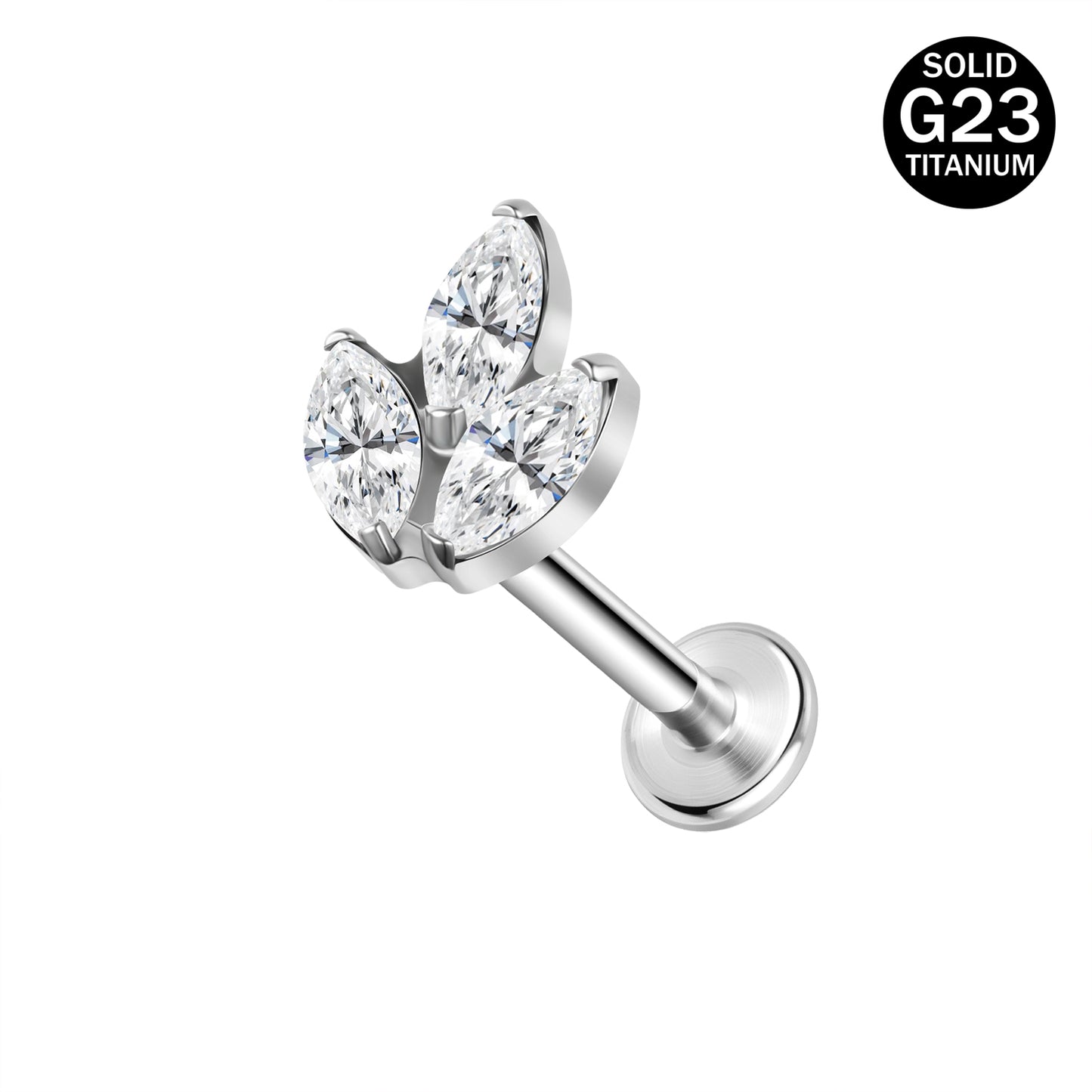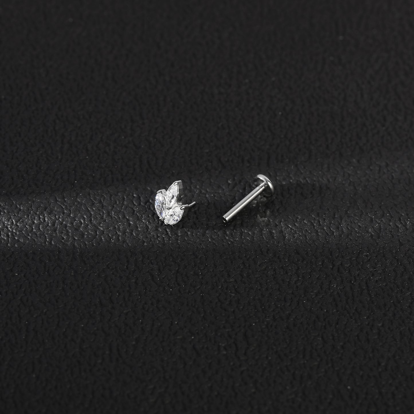 16g G23 Titanium Labret Ring Zircon Stud Earring Threadless Conch Helix Lip Piercing