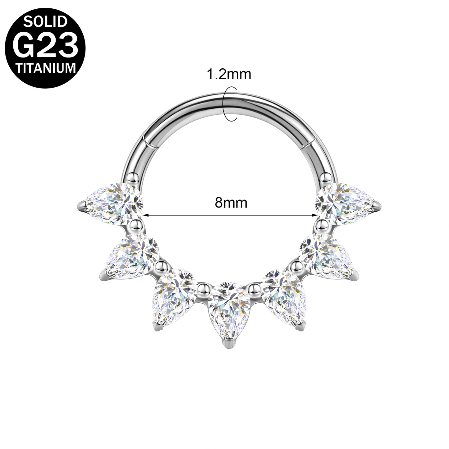 16g G23 TItanium Nose Ring Bling Zircon Septum Ring Piercing Jewelry