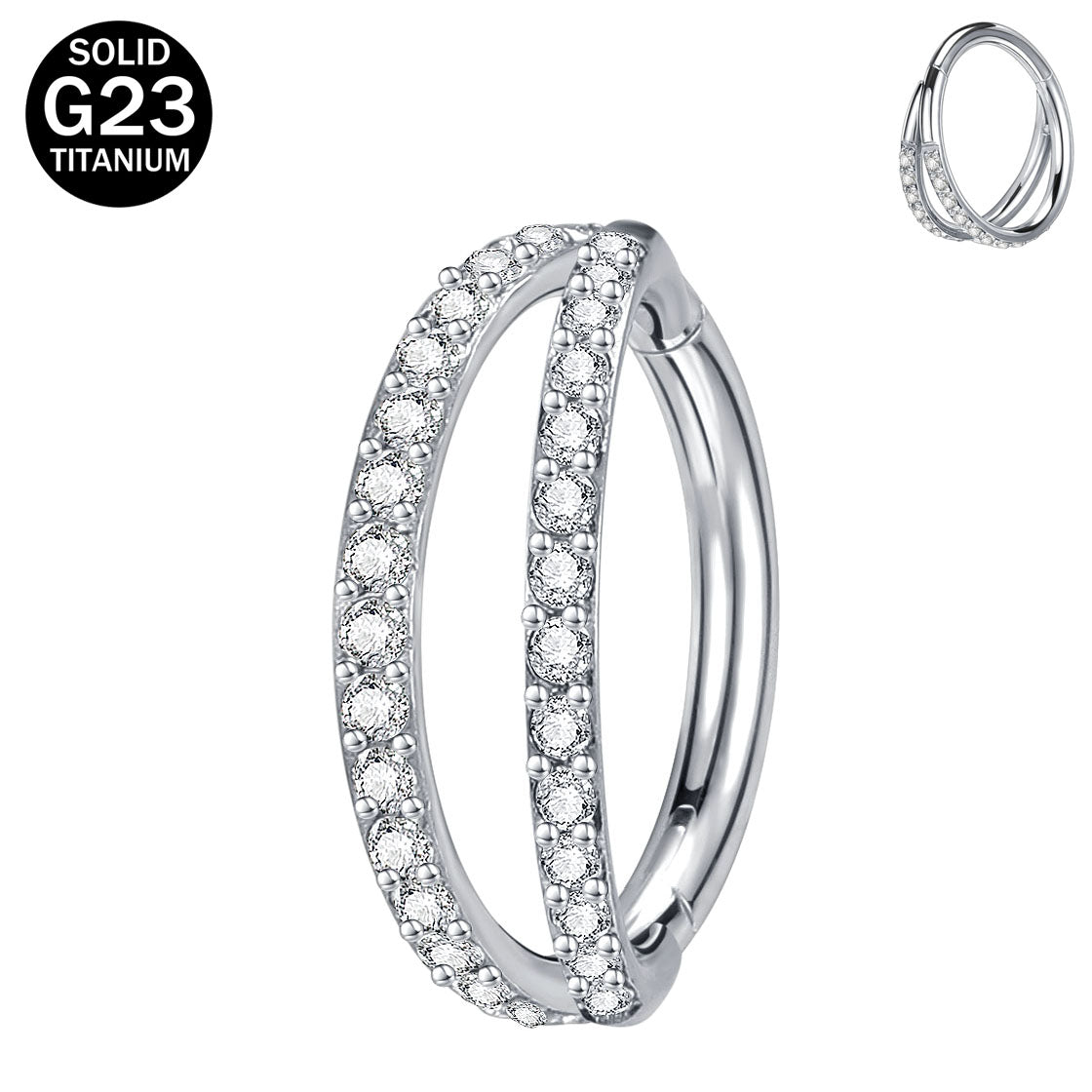 16g G23 TItanium Septum Ring Hinged Nose Ring CZ Cartilage Earring