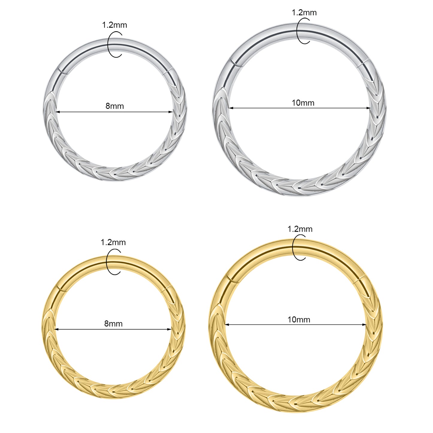 - Gauge: 16G (1.2mm) Bar Thickness, Inner Diameter: 8/10mm.