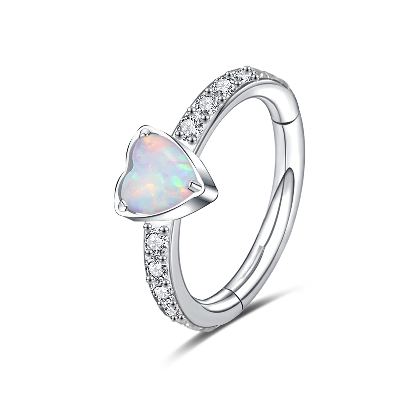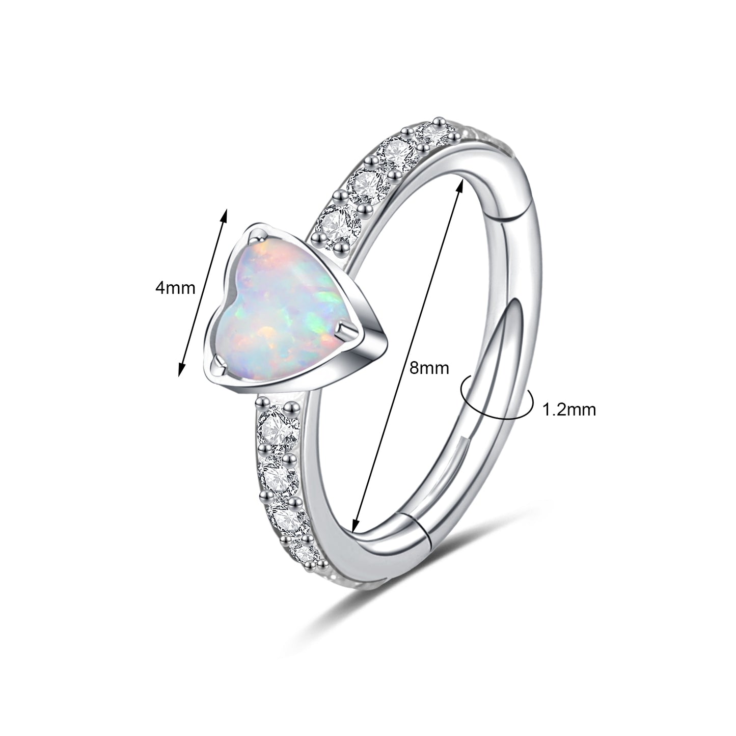 16G Heart Opal Nose Clicker Hoop Ring Crystal Cartilage Helix Piercing