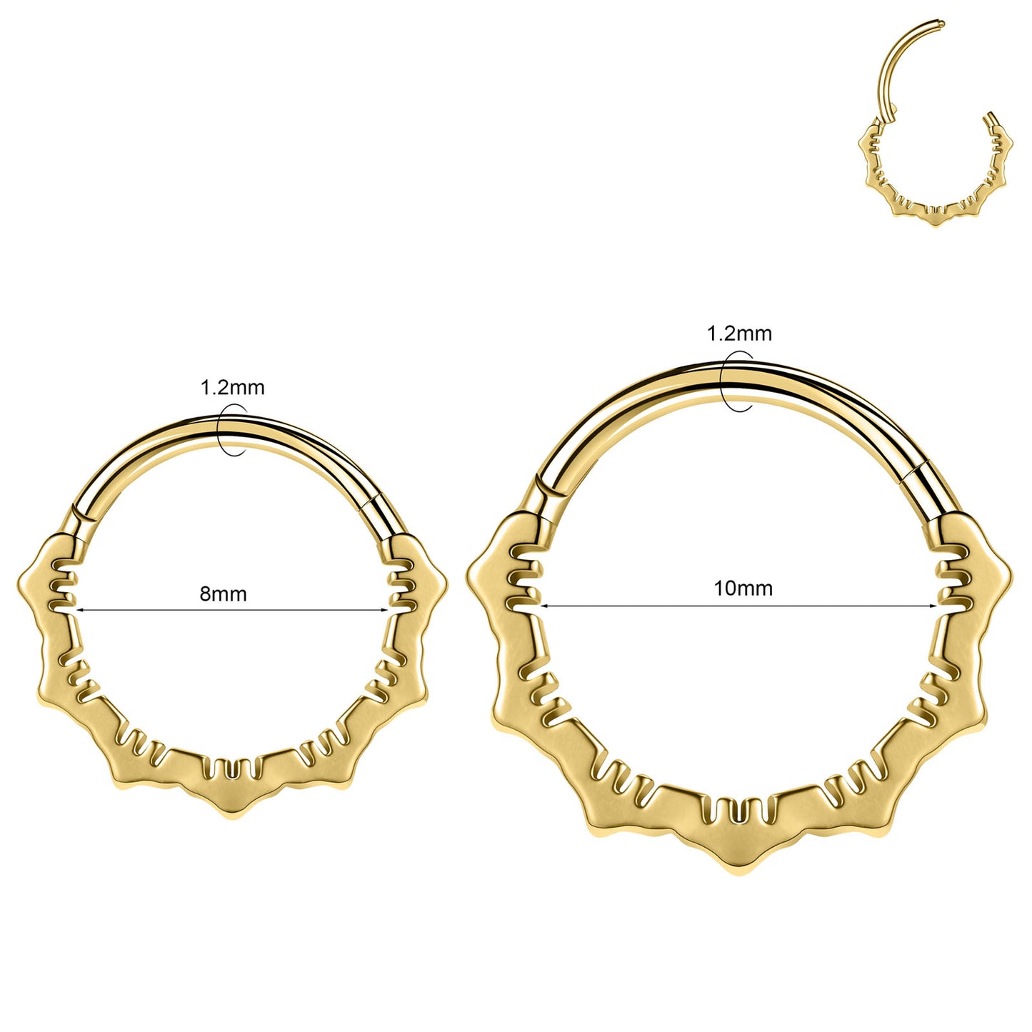 - Gauge: 16G (1.2mm) Bar Thickness, Inner Diameter: 10mm.