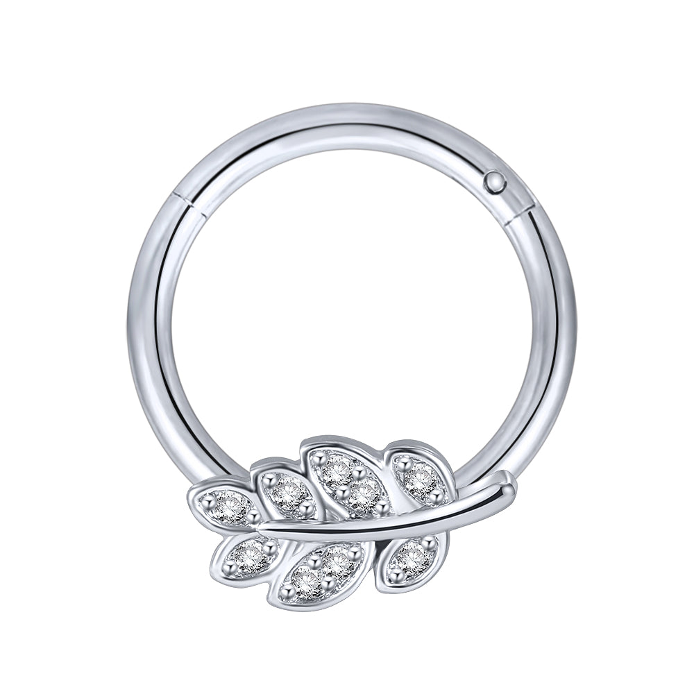 16G Leaf Cliker Septum Rings Crystal Stainless steel Helix Cartilage Piercing