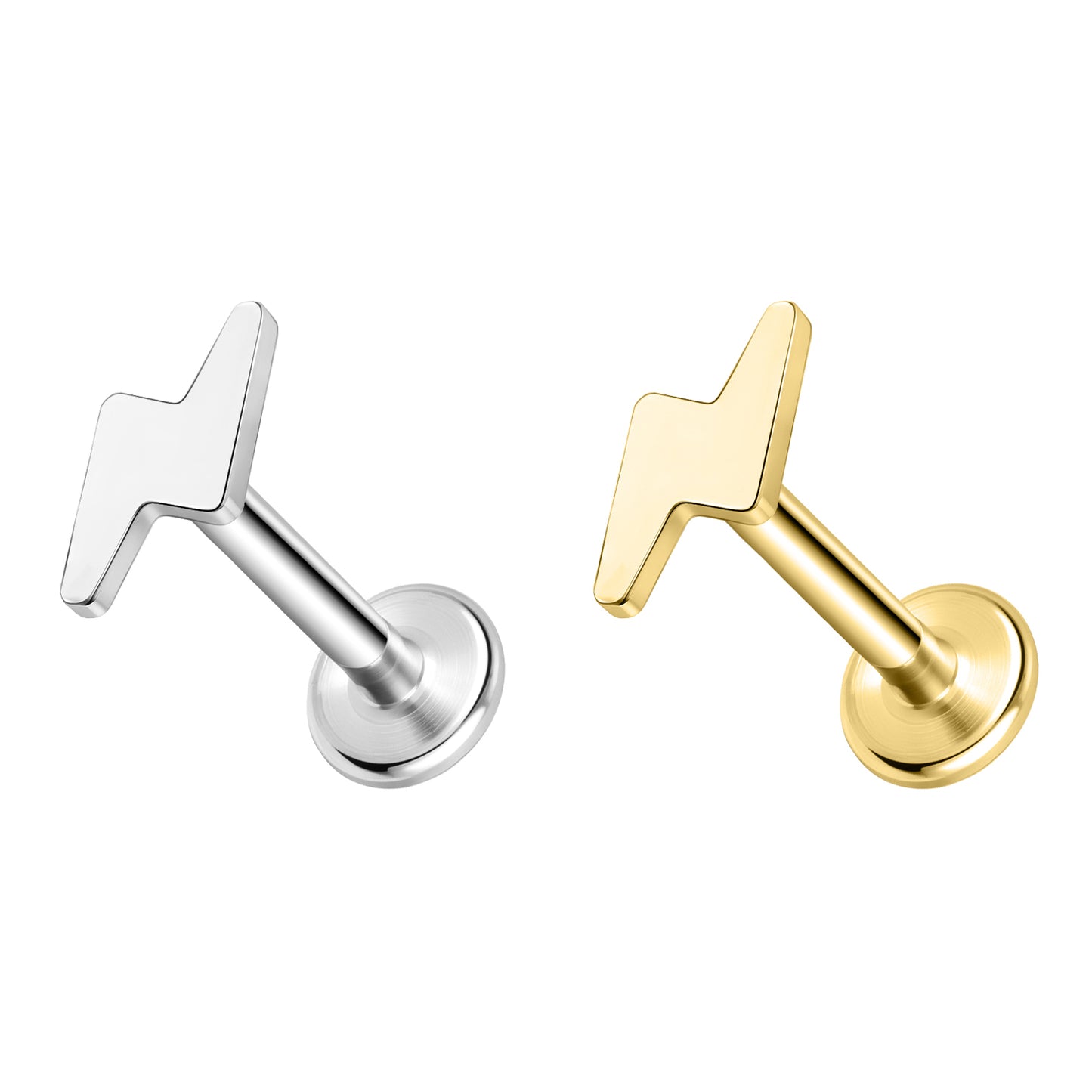 16g Lightning Labret Ring Flat Back Stud Earring Conch Helix Lip Piercing
